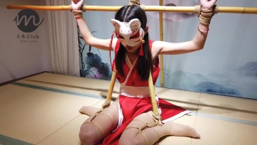 【玩奴原创】萝莉妹子梦竹初次捆绑,白丝日式三段缚驷马连头,腿上放置tk