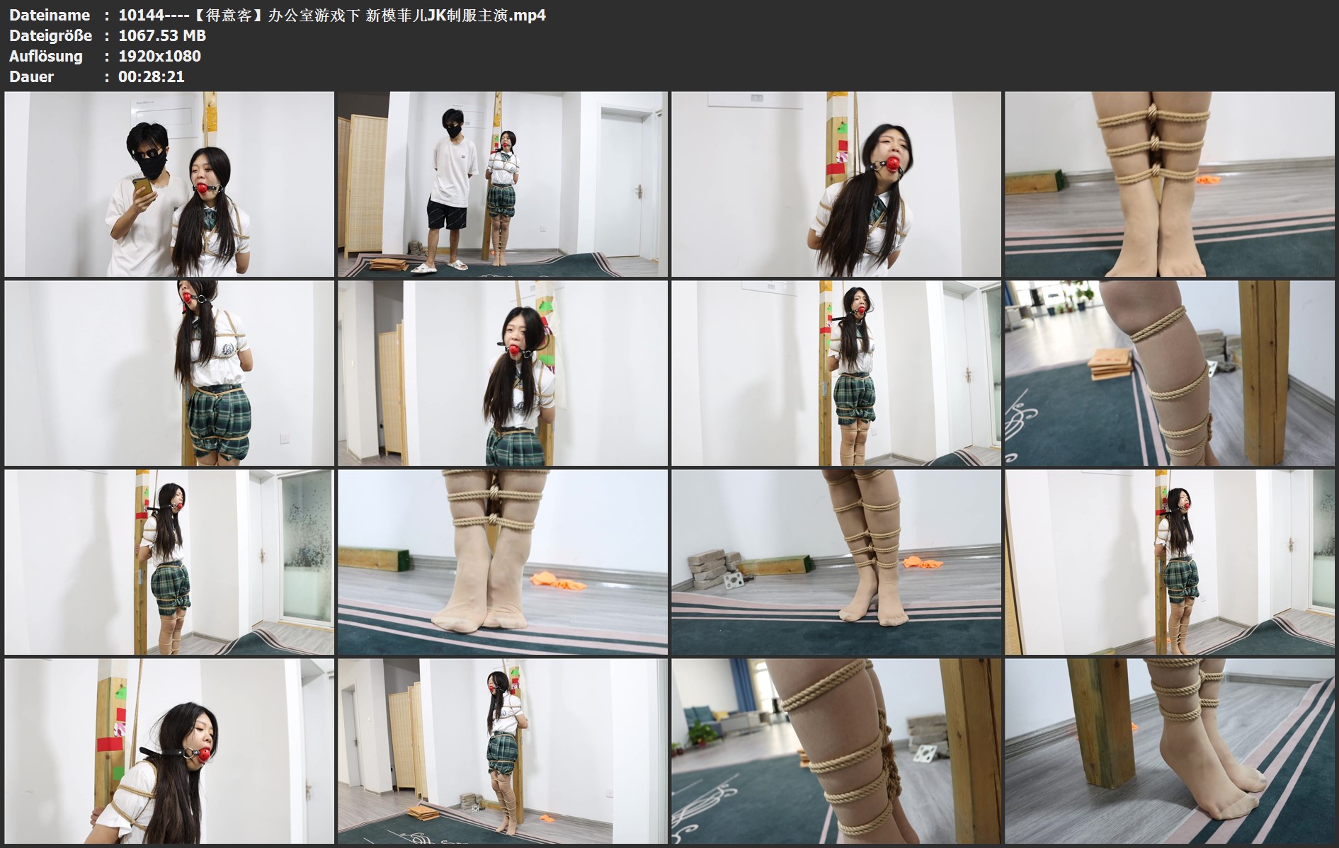 老板给秘书菲儿带来了一套JK制服,跟她玩一个小游戏。在办公室里菲儿被日式后高手直立吊起来,站在5本书上。老板说:这里有8道题,你要是答对了没有奖励,答错一题抽一本书,这些题都是中学课本上有的,今天来给你找找学生时代的感觉。然后老板给菲儿带上一个大口球,菲儿说你给我带口球我怎么答题。老板说:怎么带上口球就发不出声音了吗,刚才不是叫的挺欢的。然后开始答题,菲儿正好答错了5道题,老板把书全都抽走了,菲儿最后只能踮着脚被吊在办公室里。老板说一看就在学校没有好好学习,就留你在这里罚站好好反省吧。