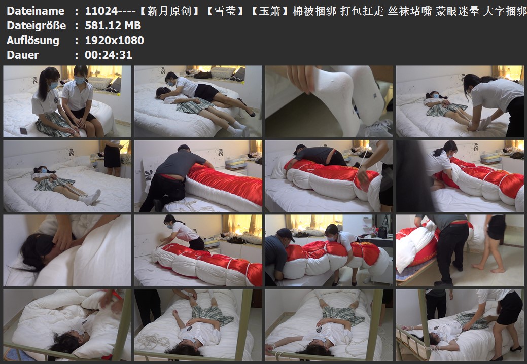 【新月原创】【雪莹】【玉箫】棉被捆绑 打包扛走 丝袜堵嘴 蒙眼迷晕 大字捆绑 tk
