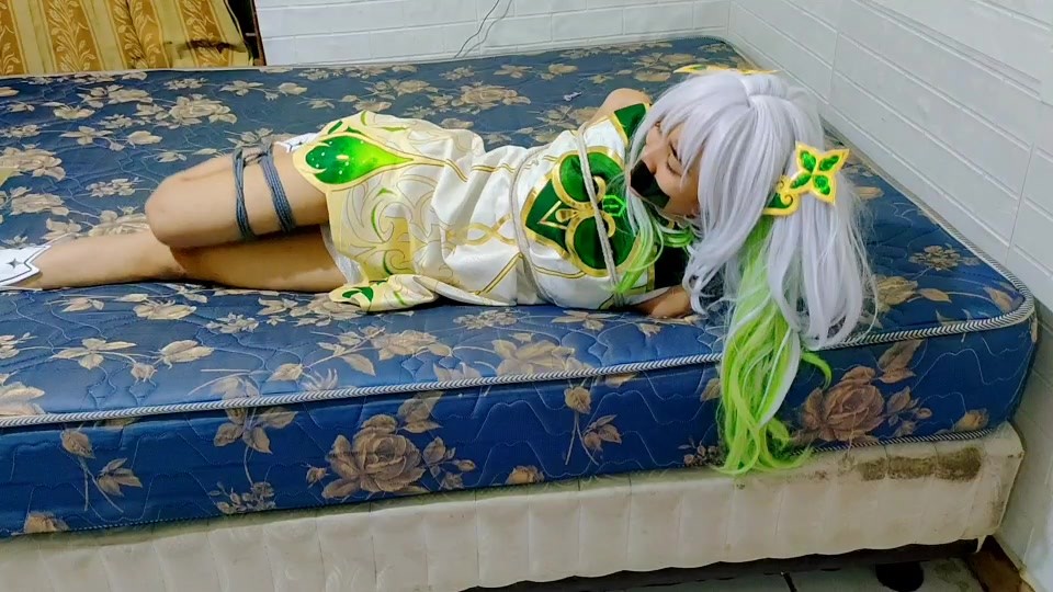 【TiedIndonesia】原神芭芭拉的捆綁鬥爭,白色絲綢,封口,繩子,歐式直裝風格