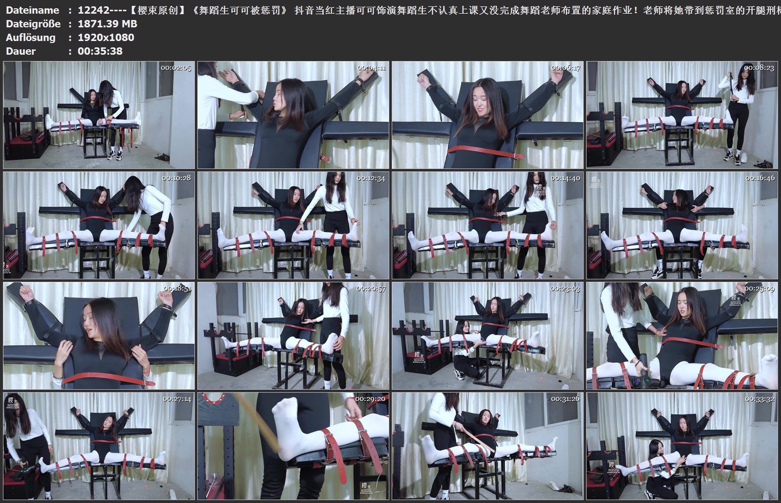 【樱束原创】《舞蹈生可可被惩罚》 抖音当红主播可可饰演舞蹈生不认真上课又没完成舞蹈老师布置的家庭作业!老师将她带到惩罚室的开腿刑椅上疯狂TK 鞭打惩罚!玩具震穴强G!