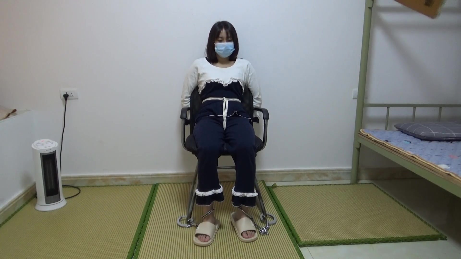 1、穿着睡衣被抓到审讯室的少女雨涵被铐在椅子上,双脚也铐住,股绳和手铐相连,防止逃跑。