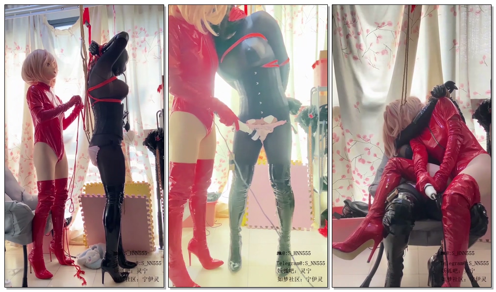 小宁连体黑丝长手套高筒靴束腰,双手举到头后绑住手腕,戴上全封闭乳胶头套,小灵一身性感红色皮衣,给小宁插上肛钩连在手上,一动就会拉动肛钩,那种仿佛被人侵犯的感觉,好棒~(当时录到这手机内存满了,后面20分钟没录上,可恶呀),