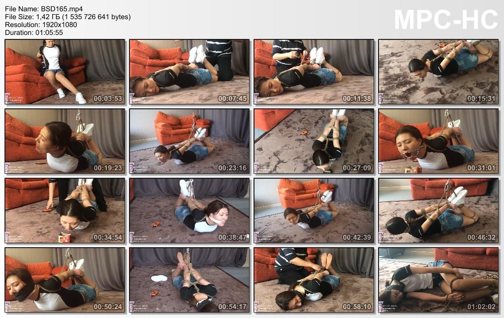 【BSD】隶娘风格-将高个漂亮妹子放倒在地上对她进行紧缚调教,同时用各种道具对她进行堵嘴,看她挣扎的同时口水横流