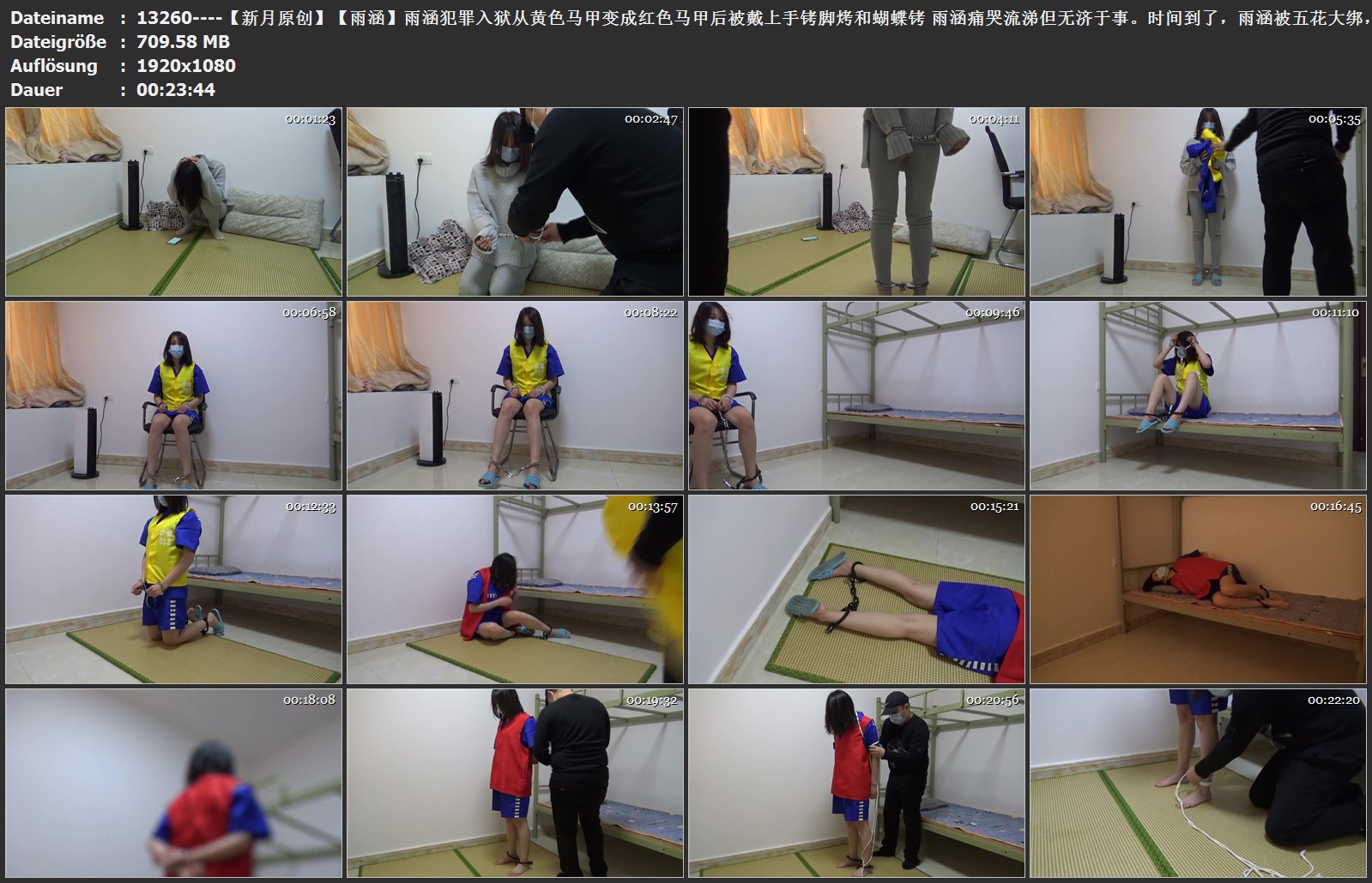 【新月原创】【雨涵】雨涵犯罪入狱从黄色马甲变成红色马甲后被戴上手铐脚烤和蝴蝶铐 雨涵痛哭流涕但无济于事。时间到了,雨涵被五花大绑,绑上拌绳走上刑场