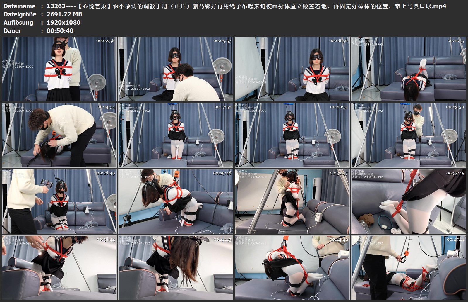 【心悦艺束】jk小萝莉的调教手册(正片)驷马绑好再用绳子吊起来迫使m身体直立膝盖着地,再固定好棒棒的位置,带上马具口球