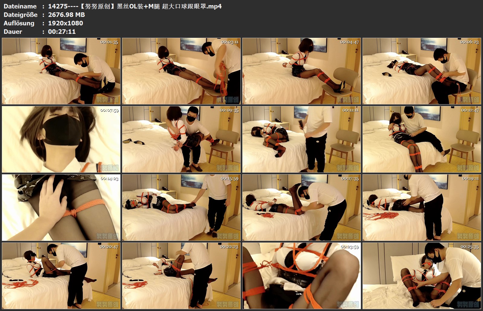 【努努原创】黑丝OL装+M腿 超大口球跟眼罩 ...