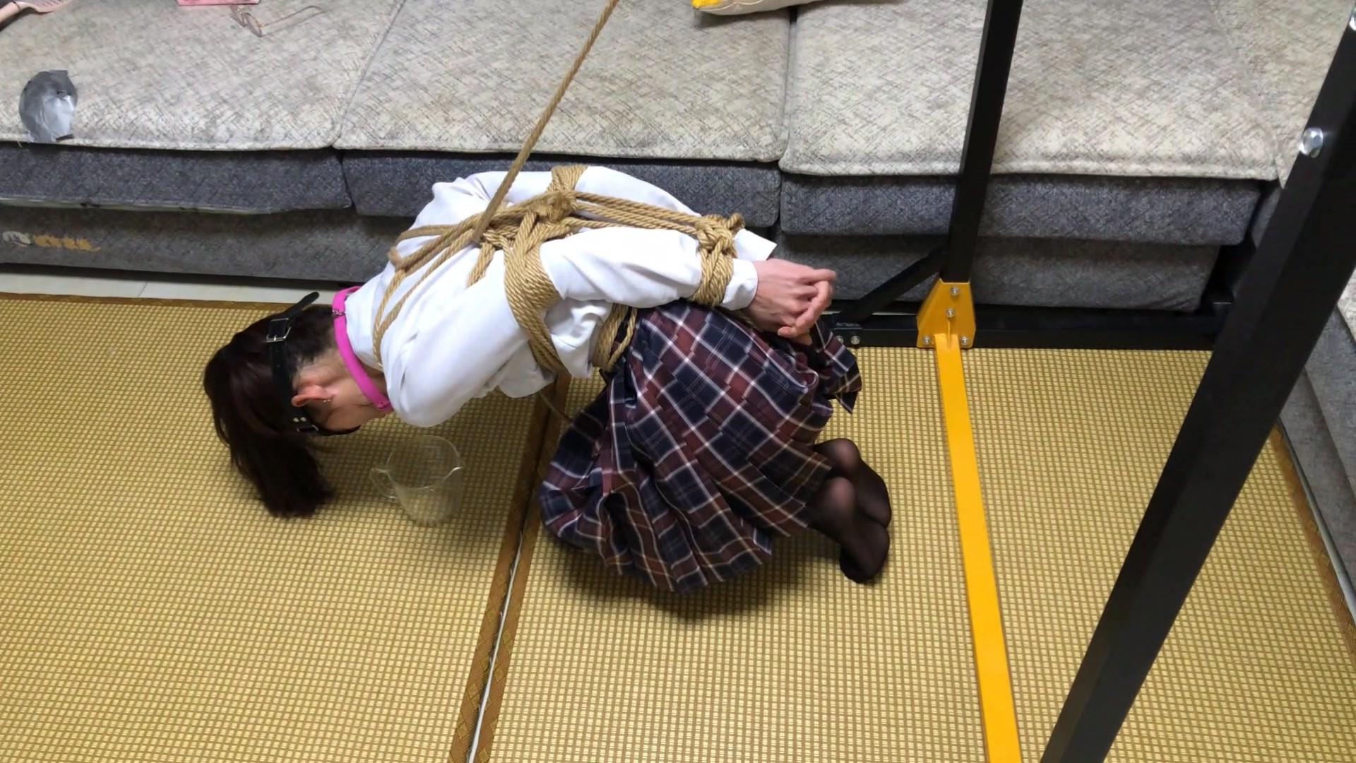 2.股绳绑在床边坐在床上,留个可以让她逃走的活扣,告诉她,给我好好呆着,我要出去有点事。说完,打开蛋蛋。雪莹不停挣扎,同时想办法解付。先解开链接股绳和床的绳子,被TD折腾得站不起来,好不容易挣扎起来,蹦着往外 逃走,客厅,房间到处找剪刀,好不容易在最后的桌子上发现了,跳过去拿剪刀,却发现直臂双手根本没办法剪断绳子。
