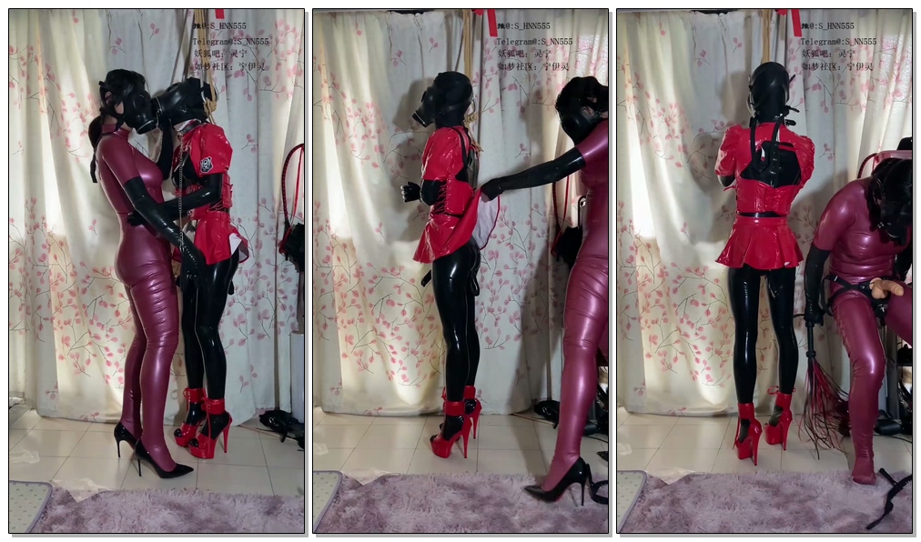 【灵宁】乳胶衣伪娘姐妹反转调教-上 呼吸面具 锅盖贞操 ...
