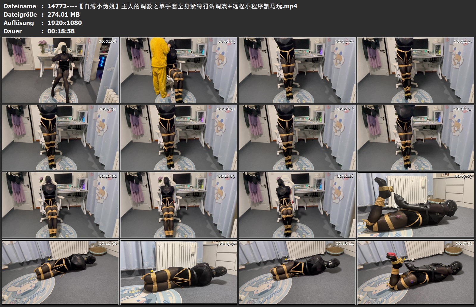 【自缚小伪娘】主人的调教之单手套全身紧缚罚站调戏+远程小程序驷马玩
