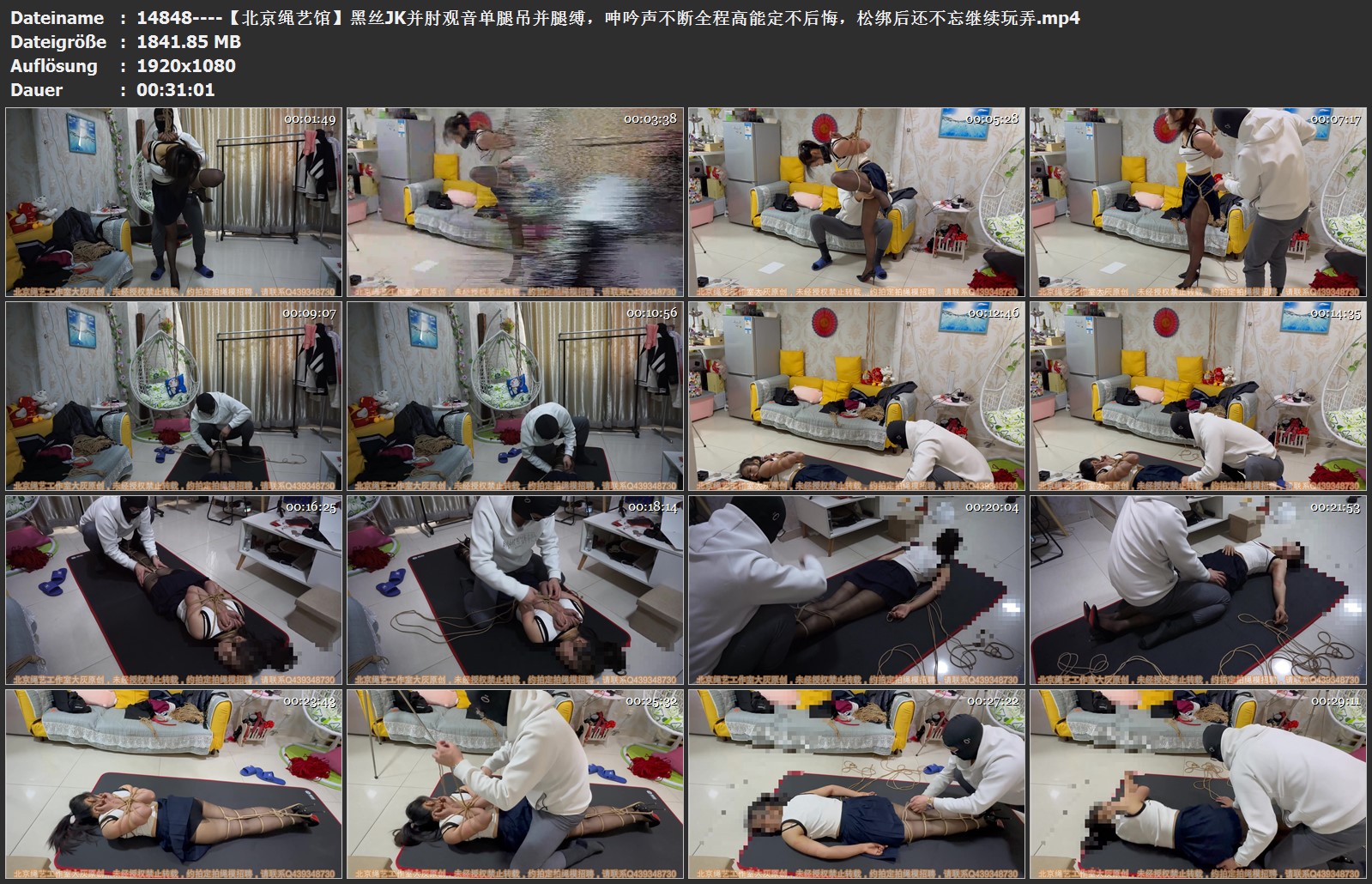 【北京绳艺馆】黑丝JK并肘观音单腿吊并腿缚,呻吟声不断 ...
