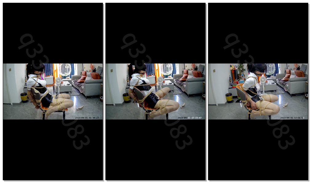 又是一个失去周末自由的丫丫,这个周末大叔就苦逼了,要加班,但是哪儿能让丫丫在家嘚瑟!中午饭过后,二话不说网上找了一张捆绑图,照着就帮了起来,,,老规矩蒙眼堵嘴,这次还给她带了一个蓝牙耳机!!!固定在椅子上之后,放置好3个监控,和一部手机之后大叔就去公司上班去了,,,,这里给大家整理了一个多小时出来,等到大叔8点过下班回来的时候,这次好像玩大了,,,,丫头测底崩溃了,就这样捆着哄了好久才配合继续后面的调教