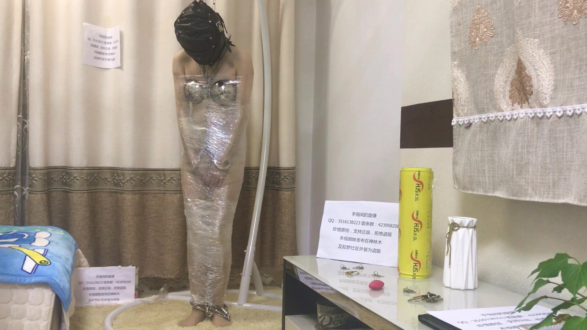 圈养富家女(下) 贞操带、贞操胸罩、全封闭头套玩、手铐脚铐齐上阵,另有保鲜膜全包跳蛋入内!
