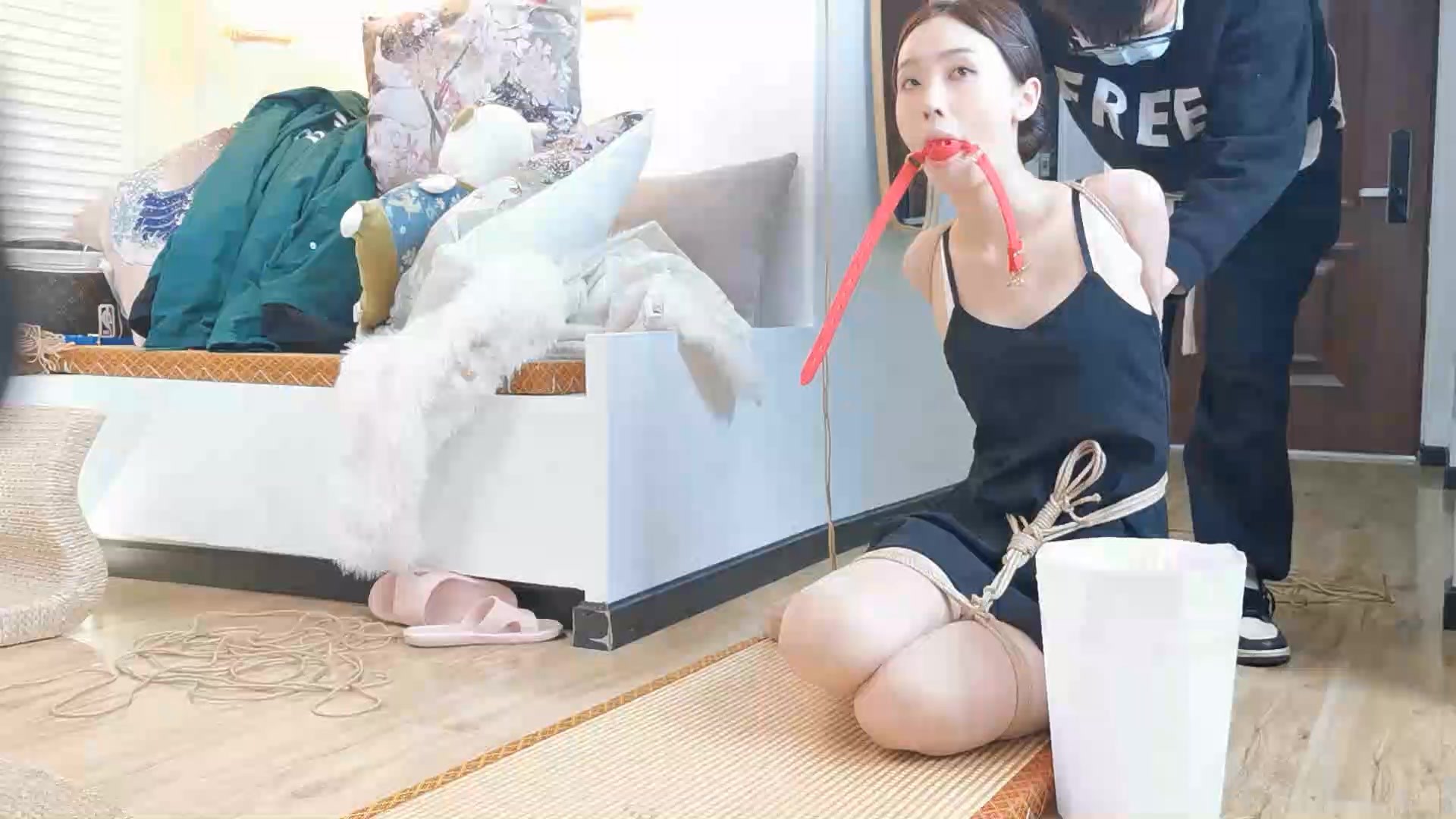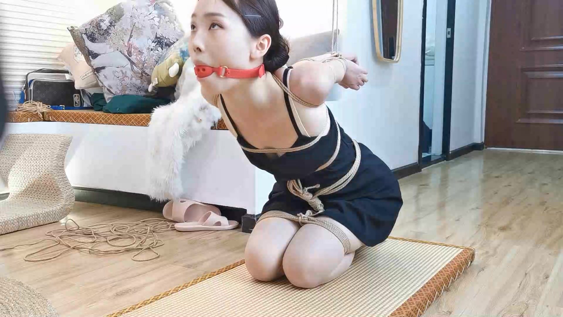 【缚予】线下真实调教之新妹子小晴高跟鞋分腿杆初调教!高跟鞋+