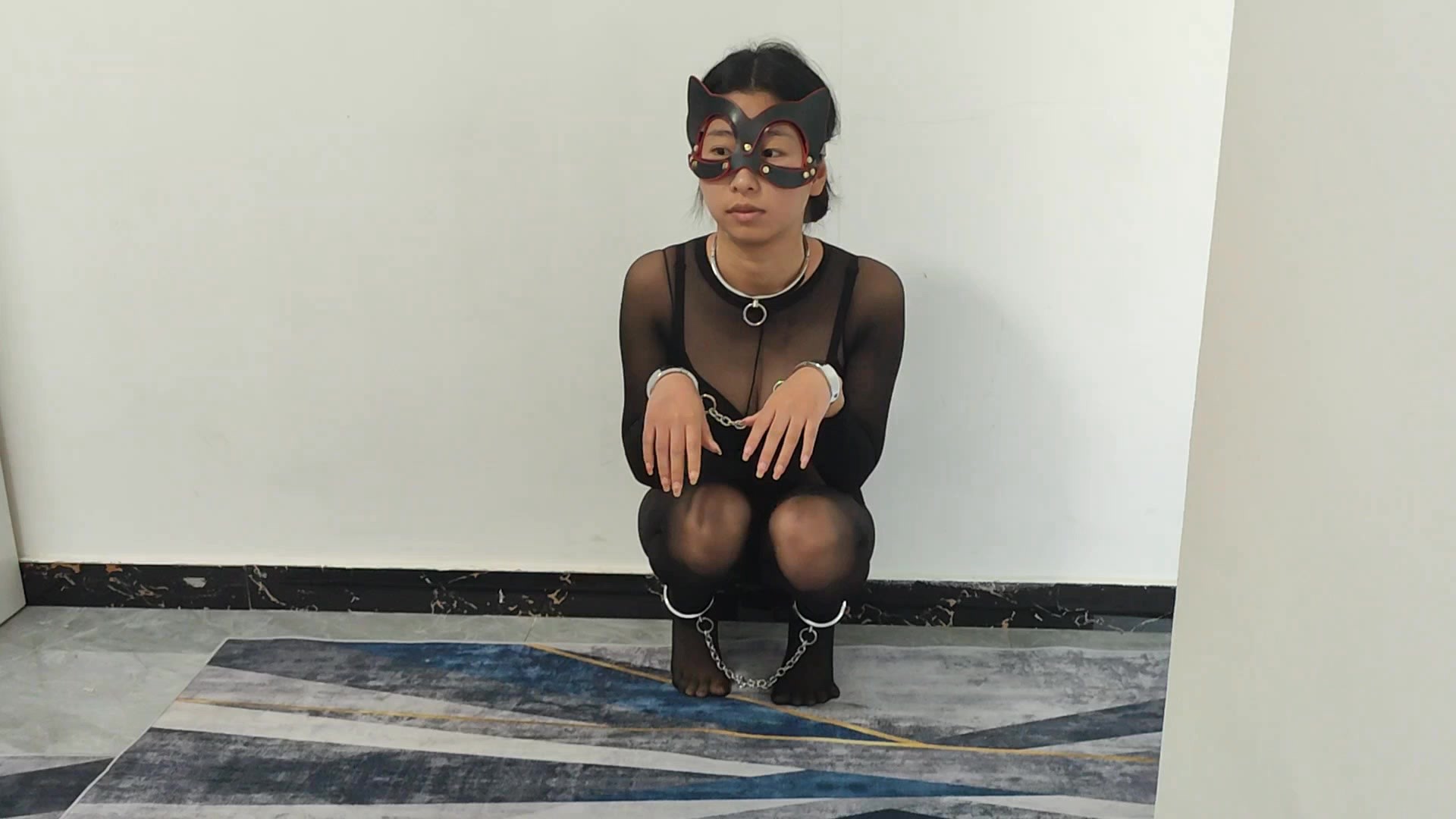 新m小赢经过这段时间的培养,渐渐的喜欢了做M的感觉,今天特地换上全身黑丝,自己乖乖的带上手铐脚铐,项圈,接受主人狗奴调教,喂食
