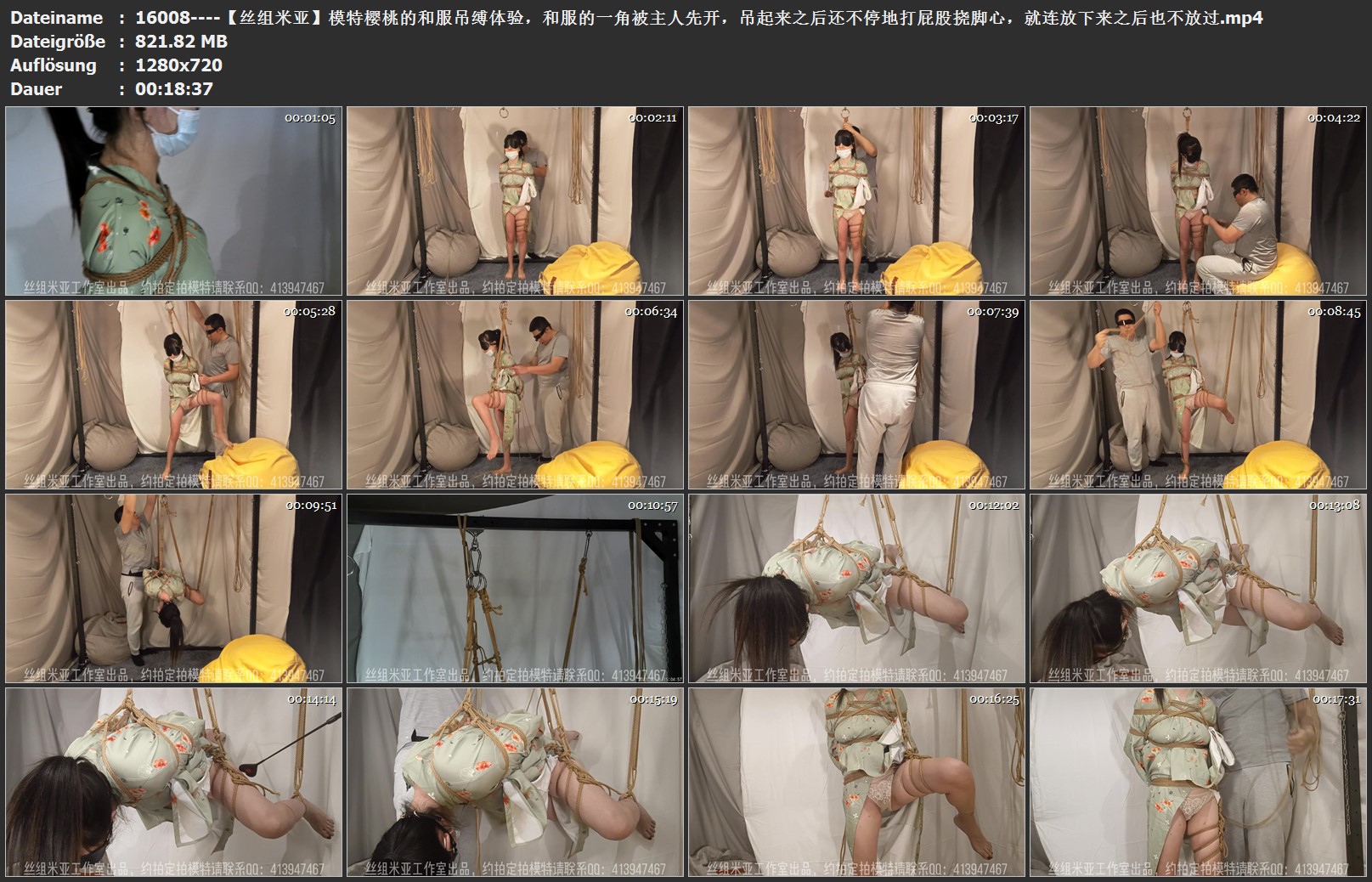 美女樱桃的和服体验,双脚悬空被绑到天上,还要经历无情的sp,发出痛苦的挣扎叫声。苦苦哀求放下来之后,也没逃过对胸部的蹂躏