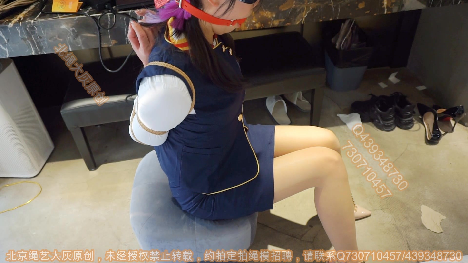【北京绳艺馆】完整版绳模佳佳东航空姐青花瓷制服咖丝黑高捆绑口舌调教