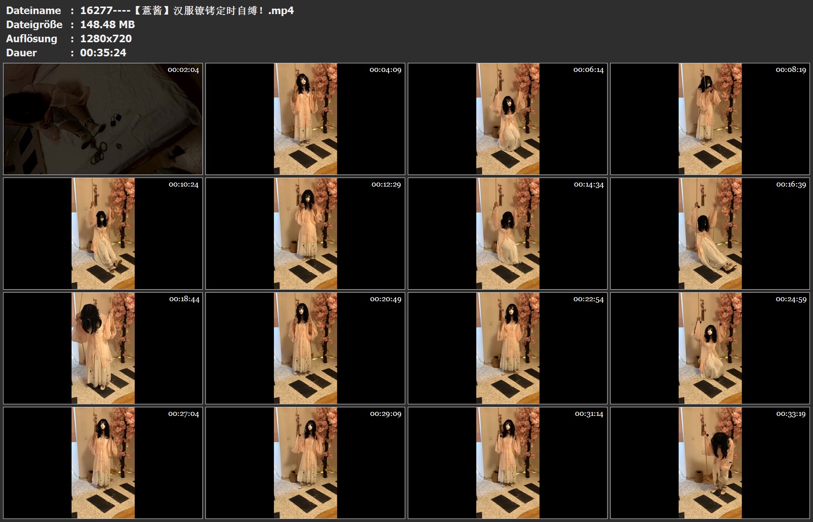 前面包含了镣铐上锁过程,穿的是是薏酱很喜欢的一身汉服,太晚了没化妆所以就带了面具,裙子里面绑了龟甲。这是第一次用定时锁,特别害怕解不开!但好在顺利拍完啦,中间还出了一点小插曲,秋千太滑了,薏酱坐着坐着突然就从秋千上滑下来了,直接跪地上了,疼坏了给!