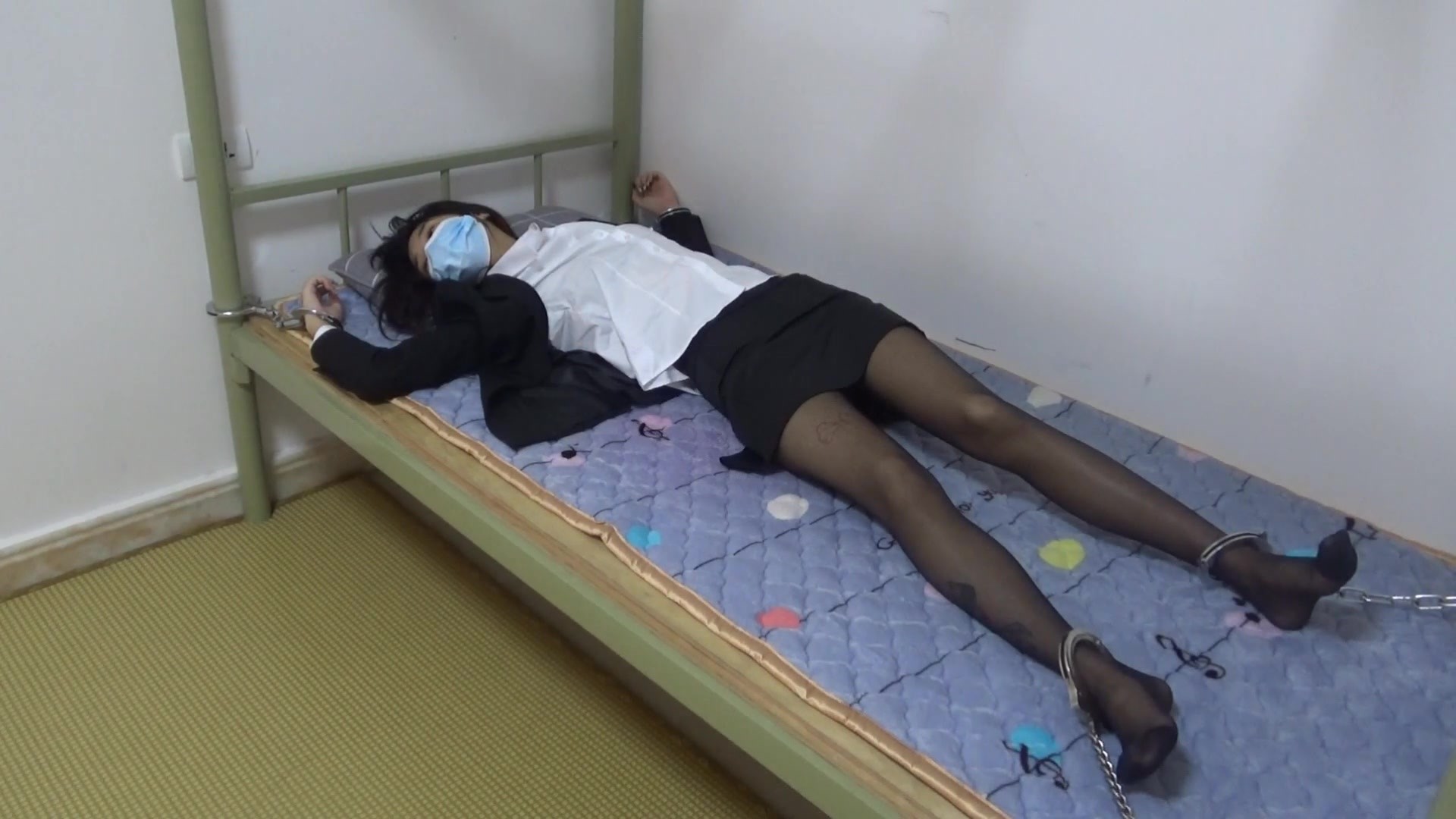 3、一番挣扎之后,彩依力竭,终于被制服,大字铐在了床上