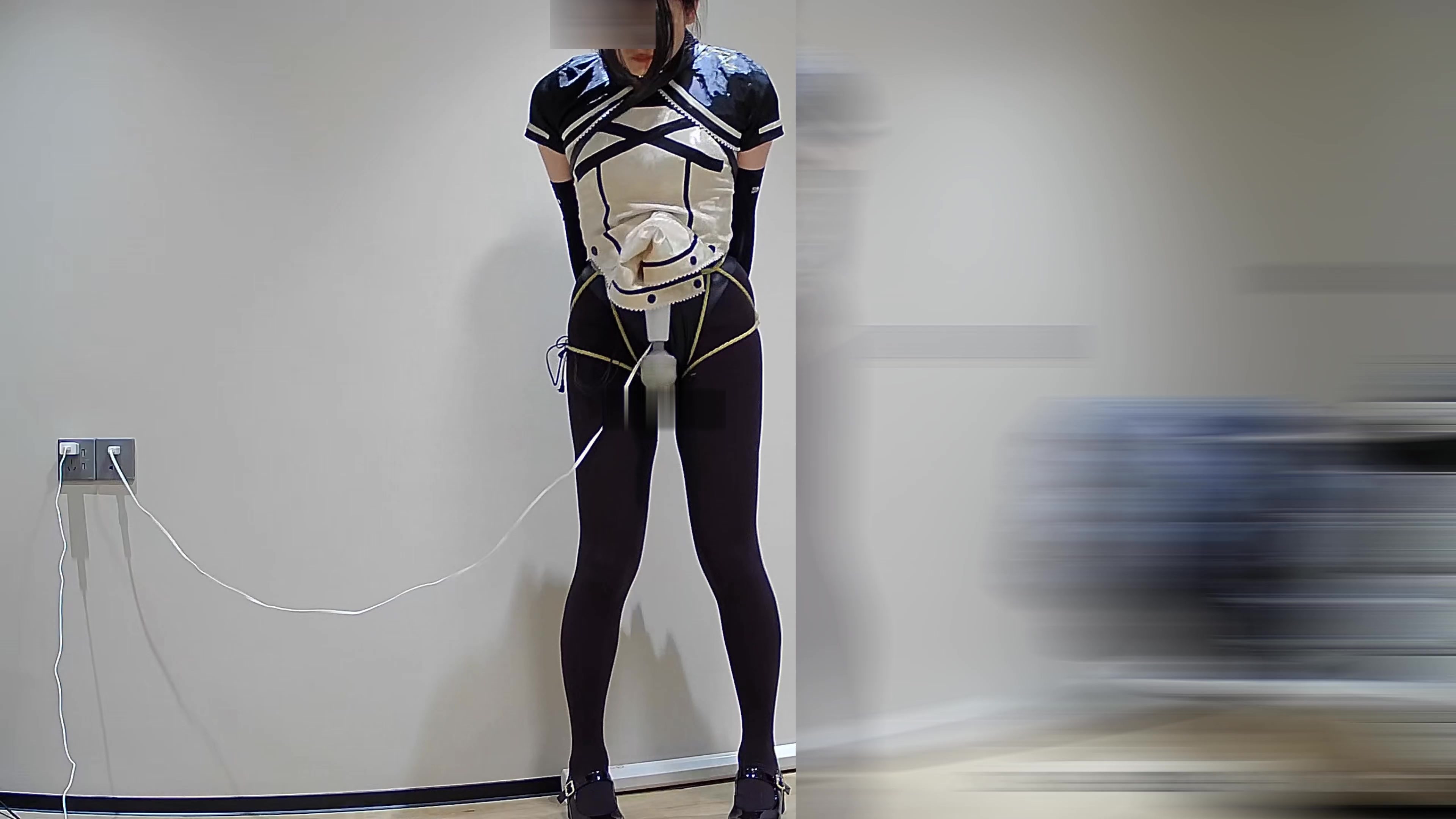 不穿套装里的裙子就得到了类似于旗袍的衣服hhh。这次塞了震动塞但是打开震动的时候没有拍的很明显。一开始训练器开太大,套上单手套的瞬间就GC了,之后就是折磨...去到不想去...第二段换了带训练套的话筒