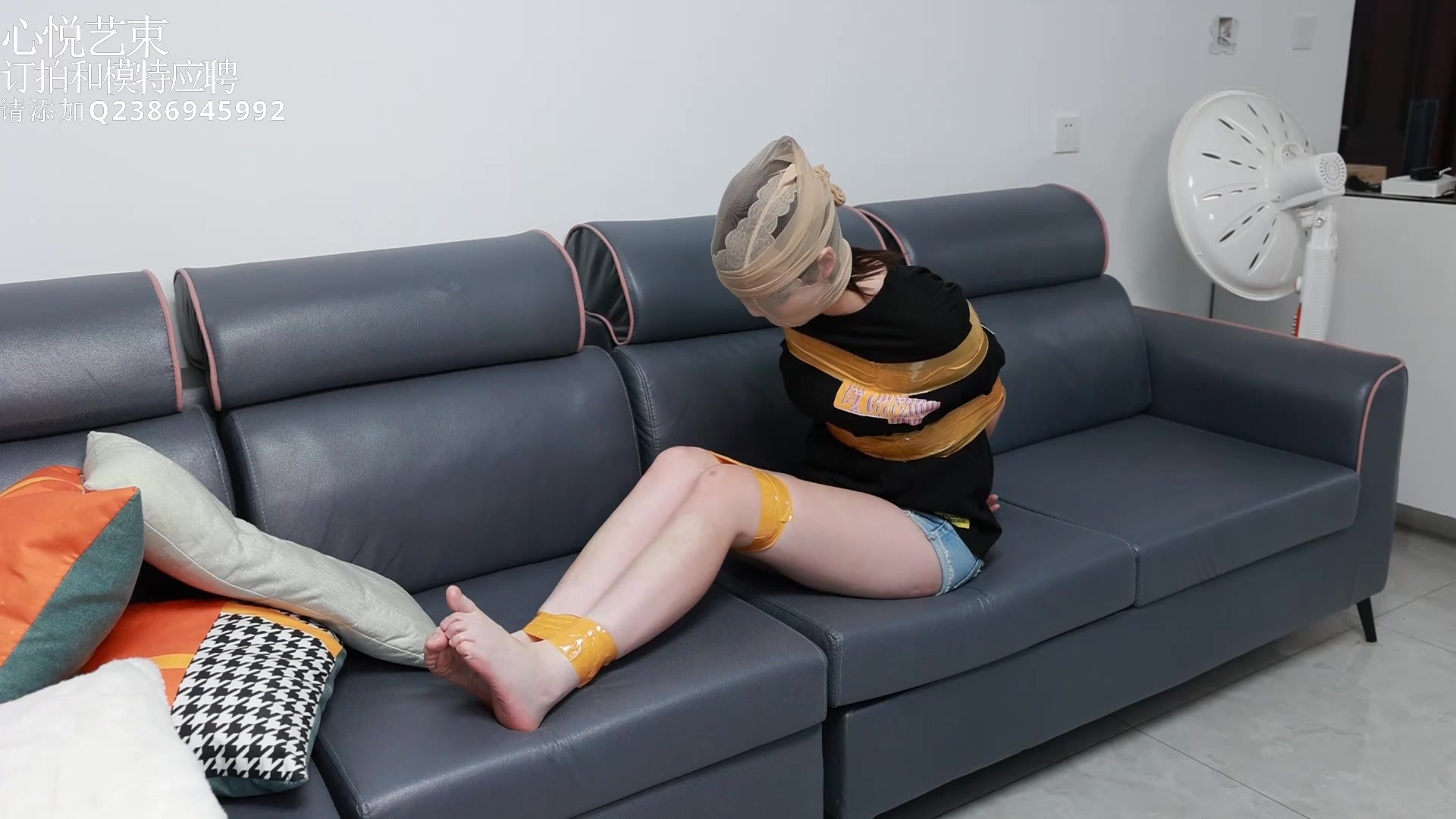 【心悦艺束】《前男友的报复》:女孩被前男友在家中绑架,用黄色胶带封嘴捆绑,并且被前男友拍打折磨
