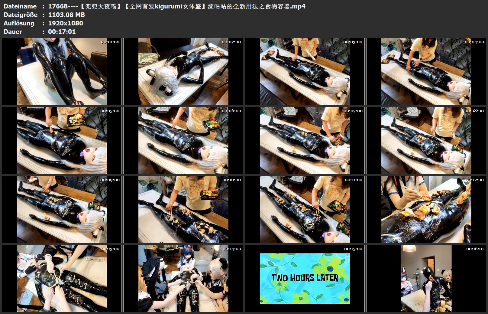 在经过特训之后,博士发现涩咕咕的潜力远超想象,可以进行深度挖掘,于是特地准备了实验方案以探索涩咕咕的全新能力。博士还告诉涩咕咕,自己请了一大帮干员前来协助,实验一定能顺利完成。涩咕咕非常高兴,因为她已经看到了摆在面前的丰厚奖励——一堆美味食物。但她万万没有想到,迎接她的将是可怜弱小又无助的境遇。。。博士的计划究竟有多么邪恶,敬请欣赏前所未有的视觉盛宴——kigurumi女体盛!