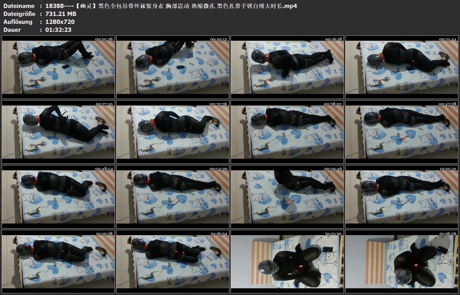 【幽灵】黑色全包吊带丝袜紧身衣 胸部震动 热缩微孔 黑色扎带手铐自缚大时长