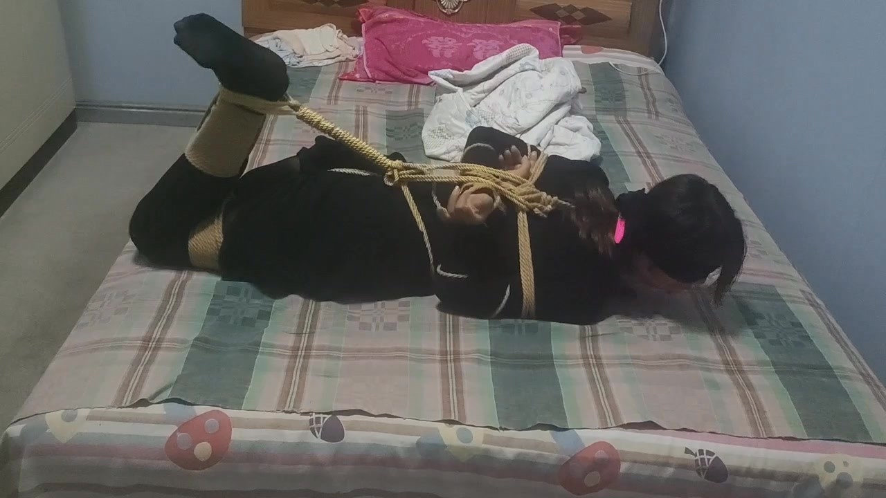 今天工作有些累了,老婆兴致特别好,好吧,累也得满足你,黑丝,黑裙驷马股绳紧缚放置挣扎,绑好之后自己慢慢挣扎享受吧,我先去休息了,关灯走人