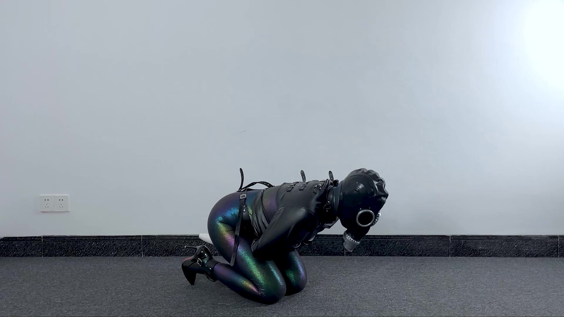【无脑鱼工作室】小元乳胶后拘束带自缚挣扎 - 防毒面具- 强制 挣扎无用