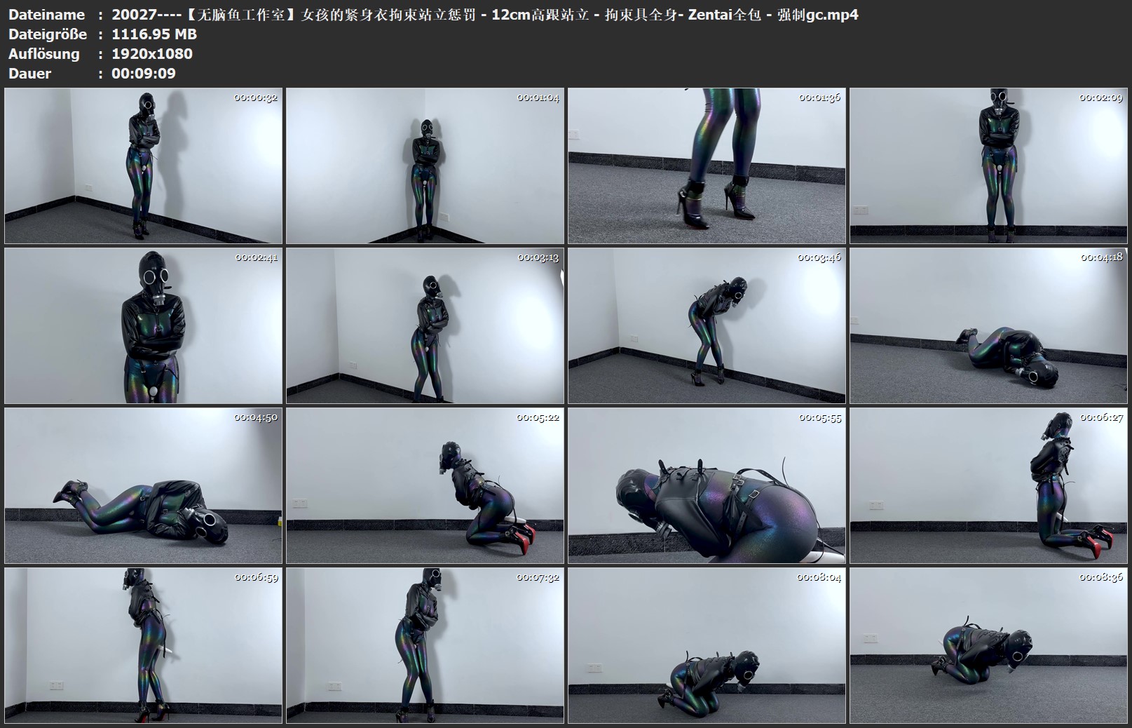 【无脑鱼工作室】女孩的紧身衣拘束站立惩罚 - 12cm高跟站立 - 拘束具全身- Zentai全包 - 强制gc