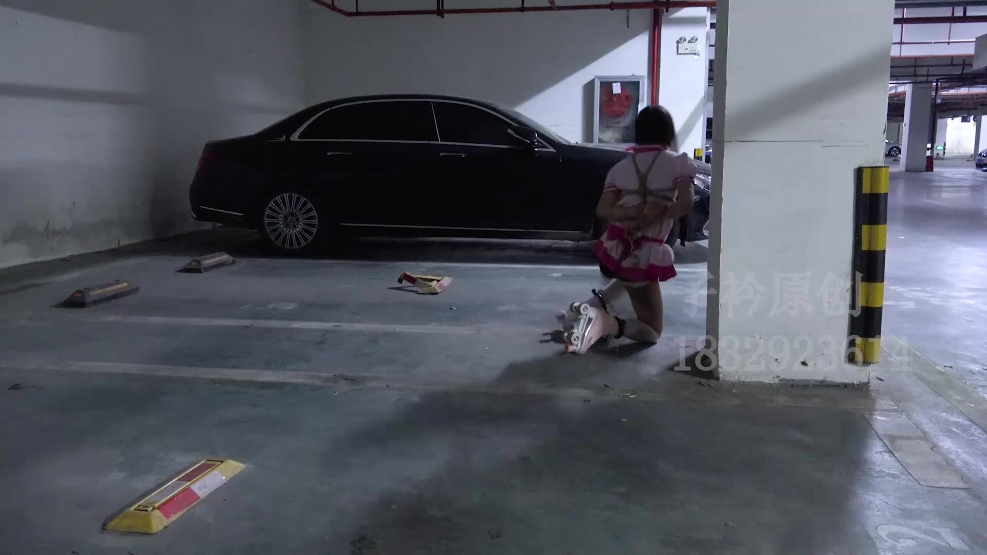 【子衿原创】萱萱 五花股绳脚镣口球后备箱放置 滑行找镣铐 遇到人要吓死了