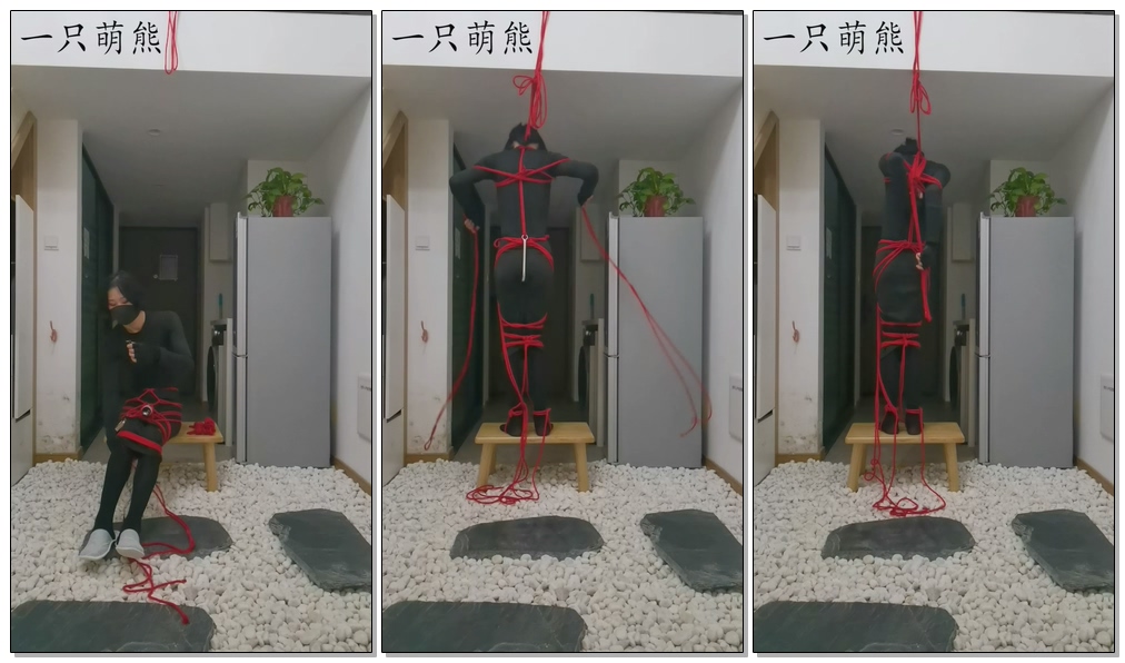 【一只萌熊】并肘直臂吊缚强制垫脚电击自缚,又差点翻车