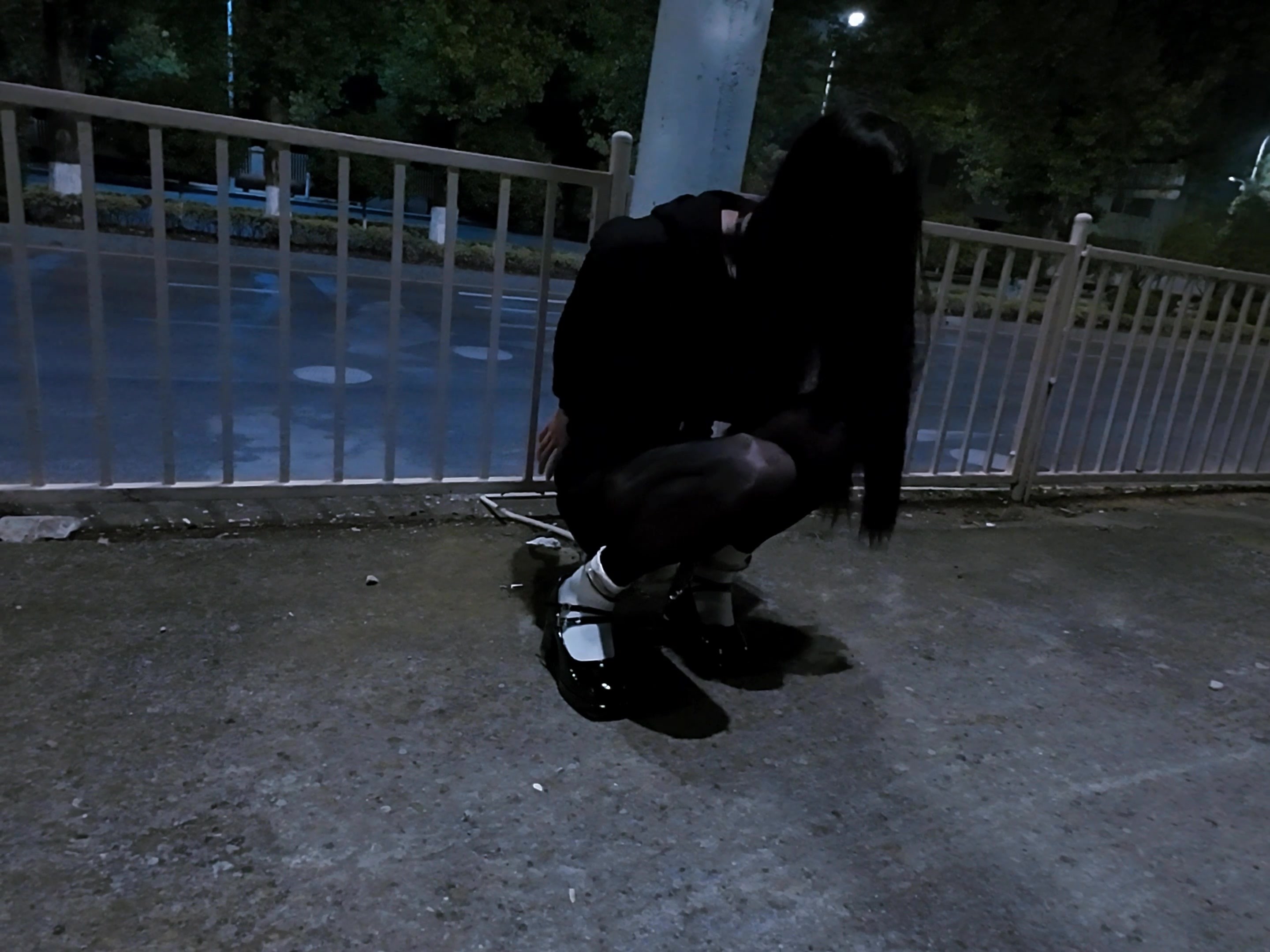 在房间穿着好,从地下车库走出去,然后被带到路边,本来选了一条比较偏,看起来没什么车和人的道路,被背拷在路边的电杆上,结果这么晚了路过的车辆还挺多,完全躲闪不及;最后将钥匙仍在旁边,用脚一点点勾过来,等拿到钥匙后才发现锁孔是朝上的0.0