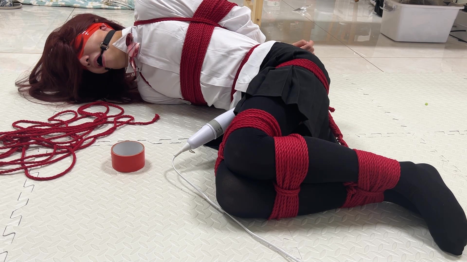【缚心室】80多斤女学生的拘束架折磨小合集,啵啵贝VS炮机,两种