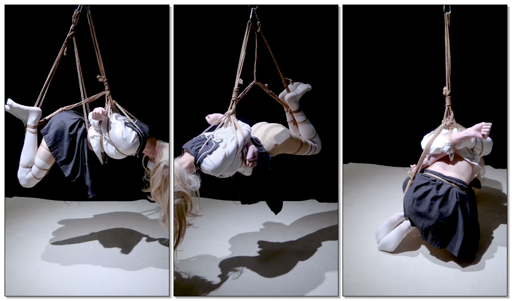 喵呜~小枫今天给大家带来的是极限驷马哦!驷马很难动弹的,在地上的话与挣扎相较还是不动会更舒服一点点~(前提是不想自己把绳子挣扎开,然后用雌小鬼的眼神露出不屑说出:杂鱼~❤杂鱼❤~。Brat属性大爆发!)。所以就结果而言:绳子变成死扣了,然后就被吊起来了呜!(挣扎幅度-70%,绳子松动率-99%,绳子紧度+60%,痛苦指数+65%)