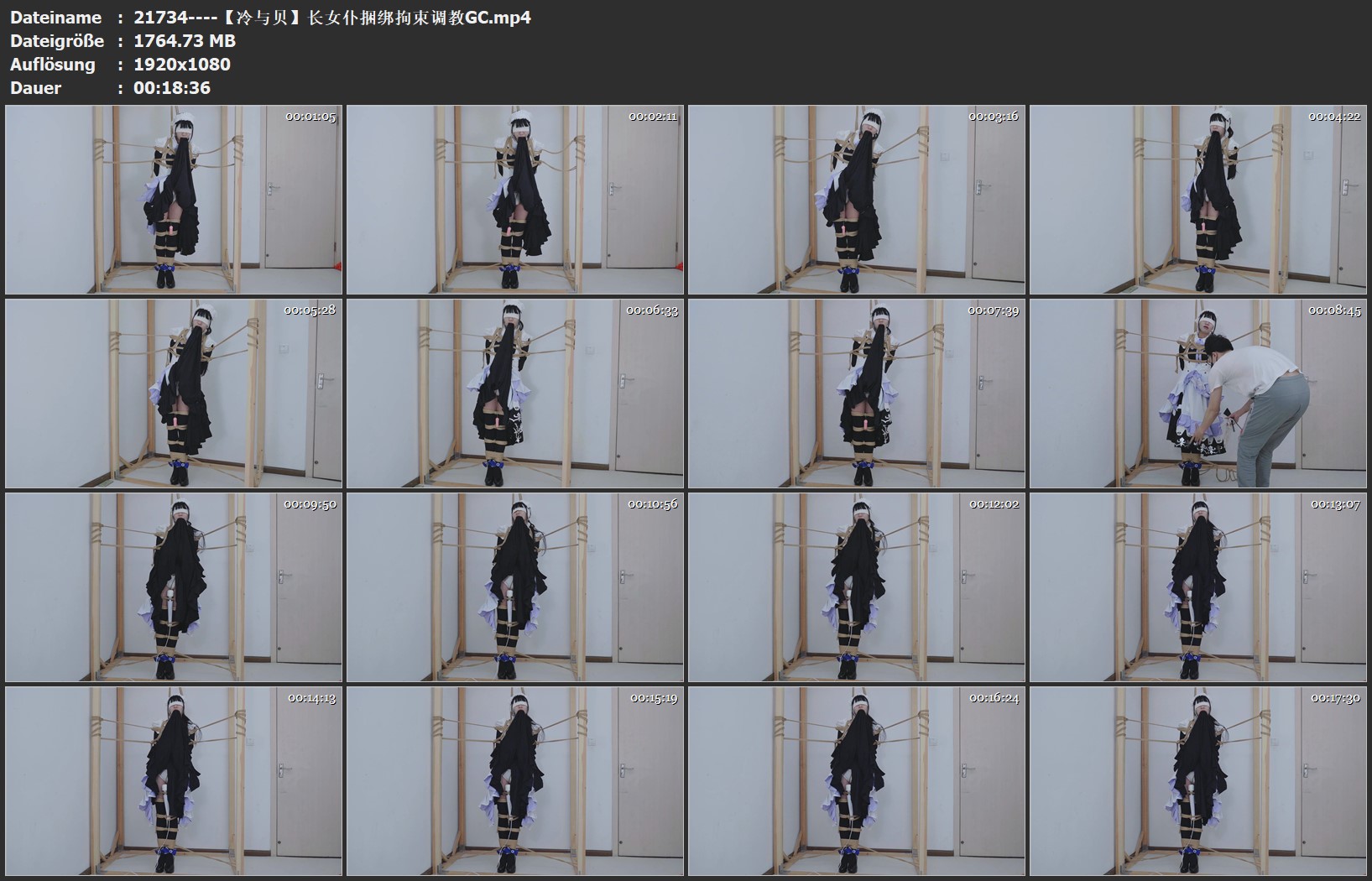 冷酱穿长款女仆,捆绑在架子中间,被命令用嘴咬着裙摆,以露出被捆绑的大腿和股绳以及跳D,过了一会冷酱忍不住叫起来松开了裙子,于是被抽了几鞭子以做惩罚,用震动话筒换掉跳D后,重新让酱咬住裙子,直到最后忍不住松口放掉裙子