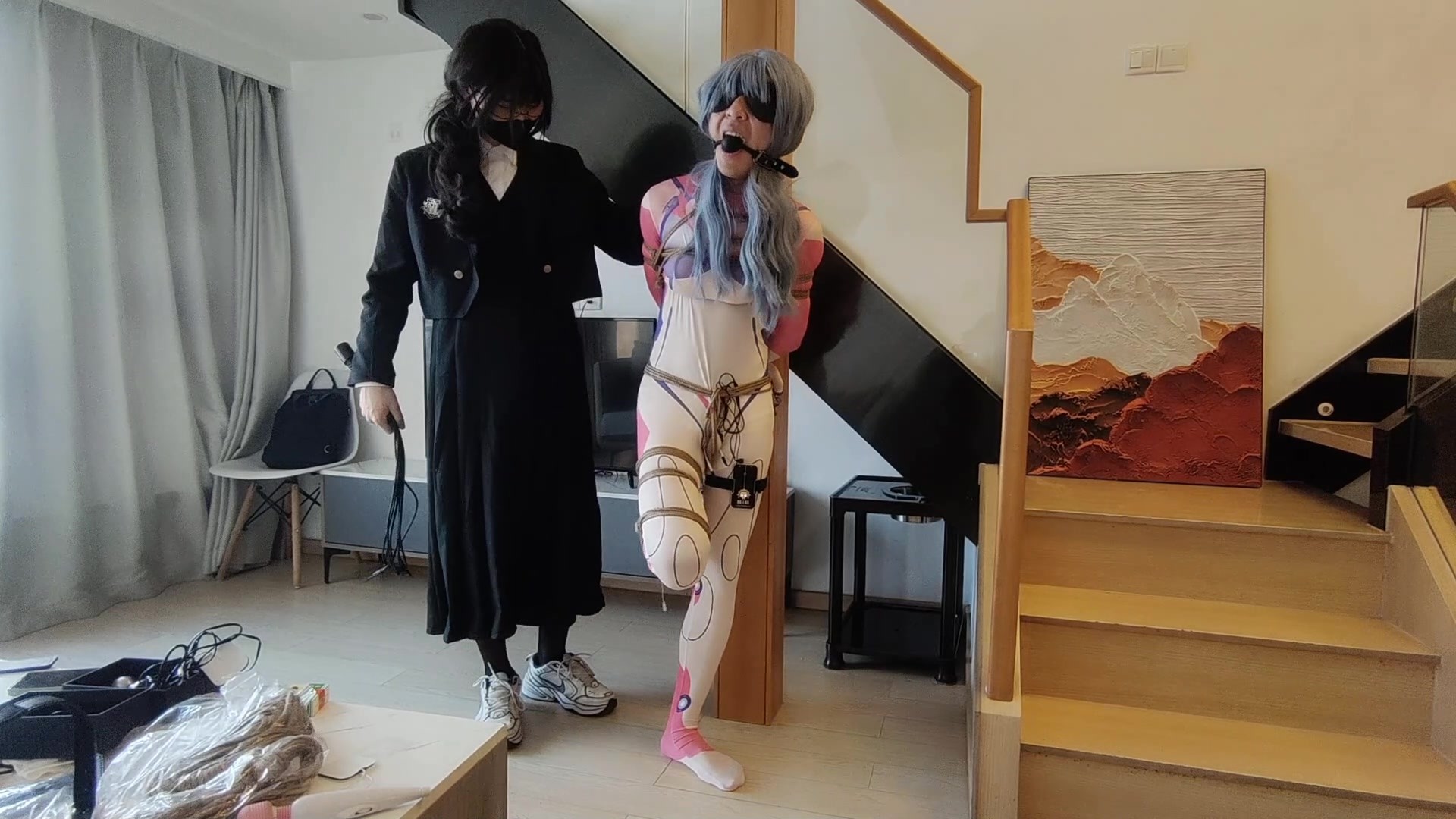 【困困】《jk劫难》伪娘jk肉丝捆绑/超短裙+口球+高跟鞋+全身紧缚+鞭打