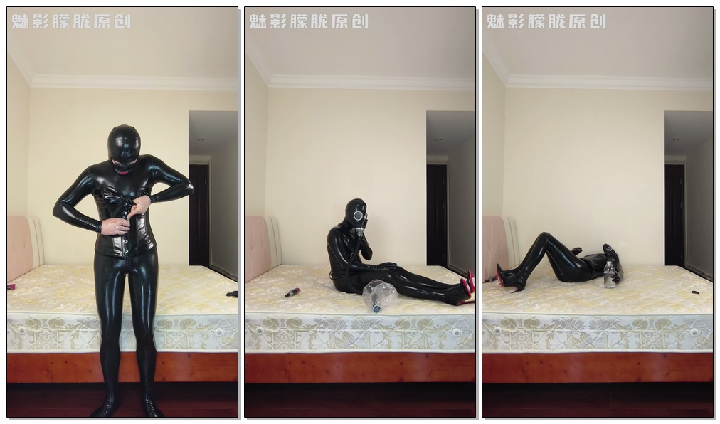 【魅影朦胧】胶衣自缚,防毒面具与呼吸瓶