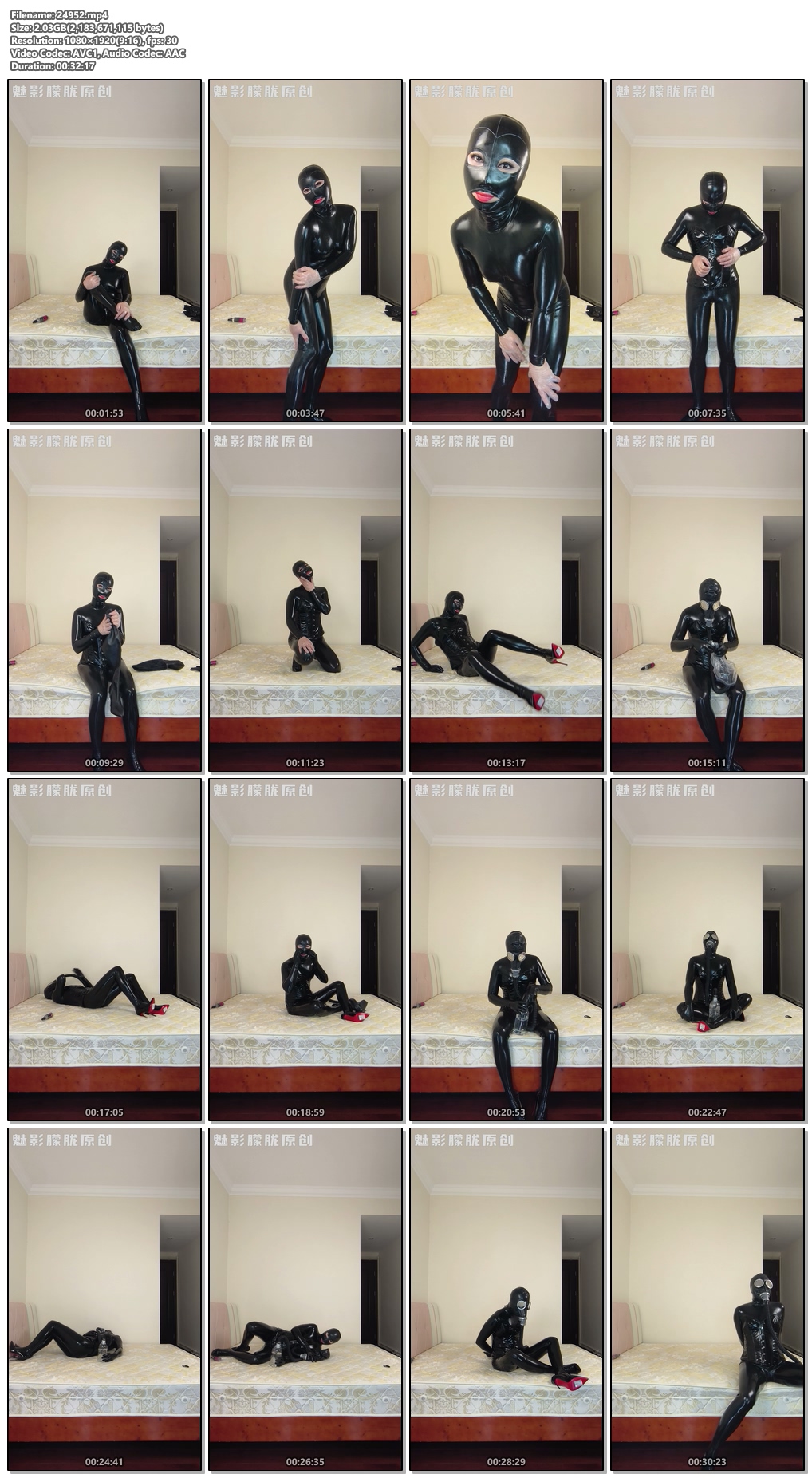 整个过程都有很重的呼吸声,穿好乳胶衣在配上塑身衣感觉很显身材,非常喜欢这身乳胶衣,开心的在镜头里面尽情展示自己。