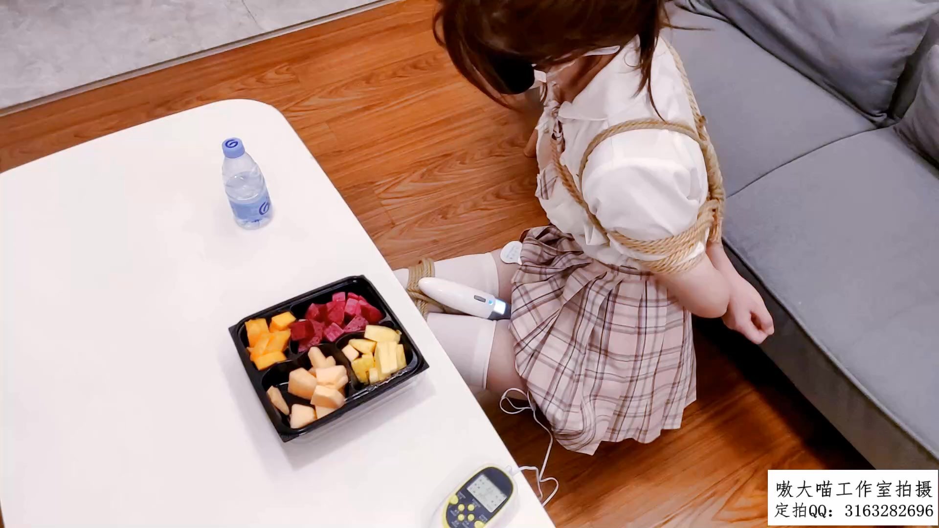 【嗷大喵】《萝莉遇险记》第十四集-JK制服拿外卖花式吃午饭+先日式紧缚和腿部膝盖捆住跳的去拿外卖+胸部扣子解开+电击贴+棒棒刺激GC并吃水果+娇喘声中吃东西+时不时GC迭起只能挣扎缓解
