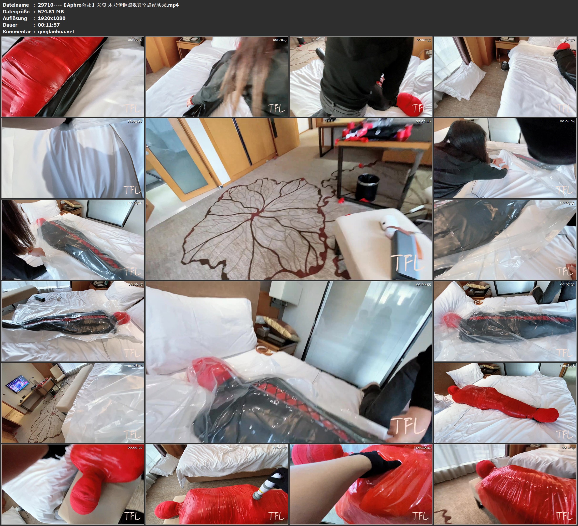 包括前期皮革木乃伊睡袋加固,及1分30秒的真空袋过程(安全),并在过程中伴随着依旧没有间断的调教