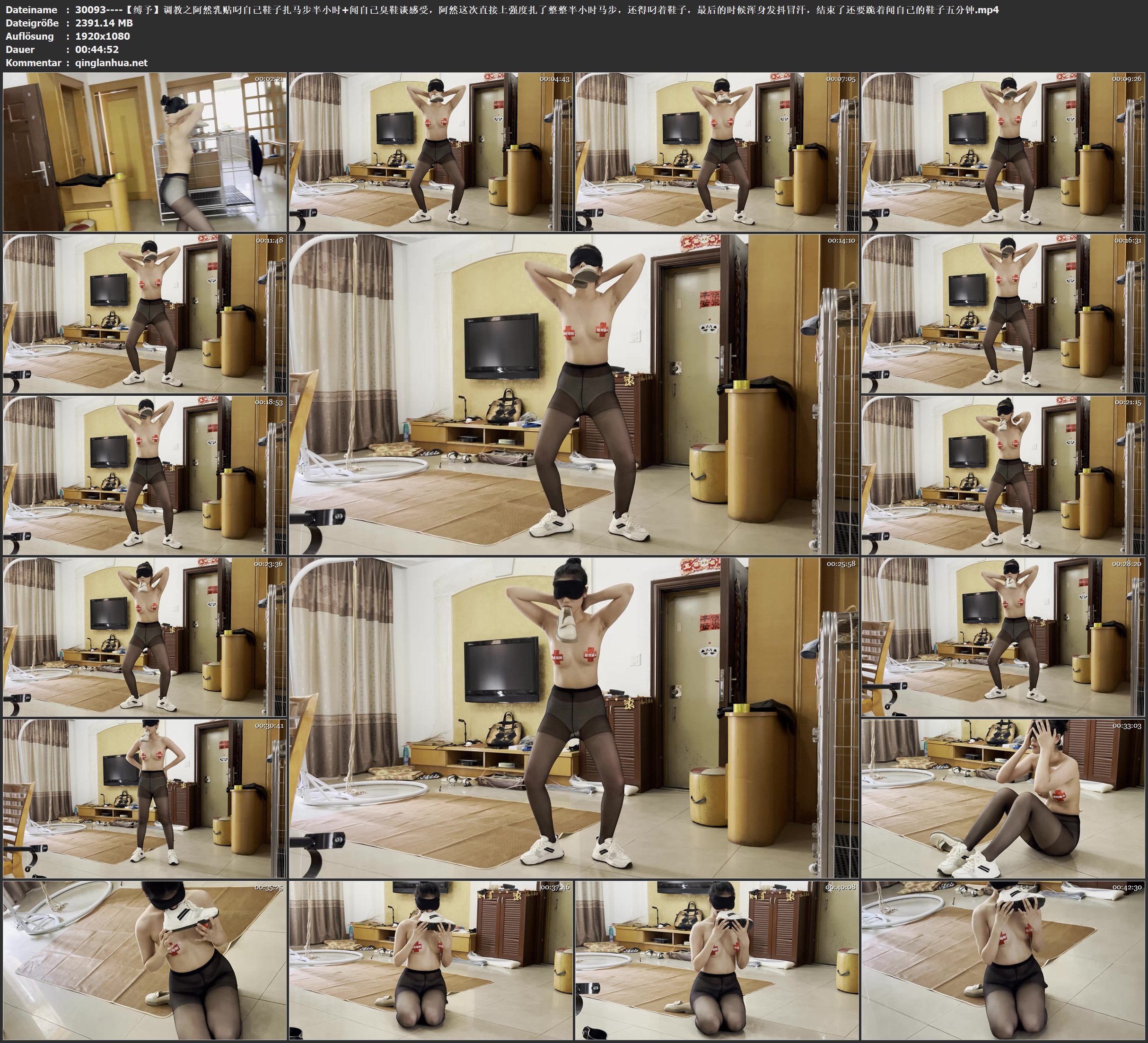 【缚予】调教之阿然乳贴叼自己鞋子扎马步半小时+闻自己 ...