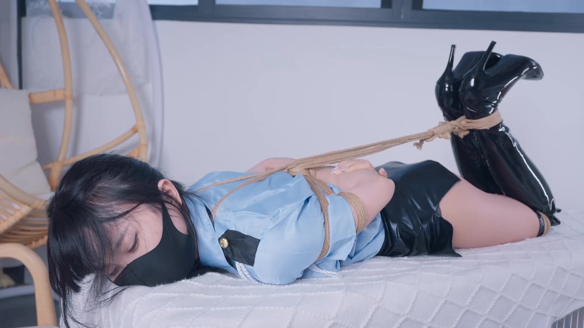 女巡逻官在家自缚,捆绑好了之后弟弟回家了,一开口就是借钱,拒绝了弟弟后他竟然说要让我好好尝试一下真正的捆绑,绑在了一个狗笼上面,放置了很长很长的时间,直到精疲力竭逼迫她同意把钱借给我之后才把她放了下来