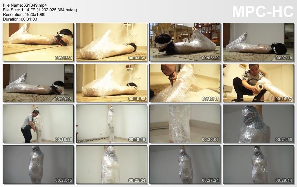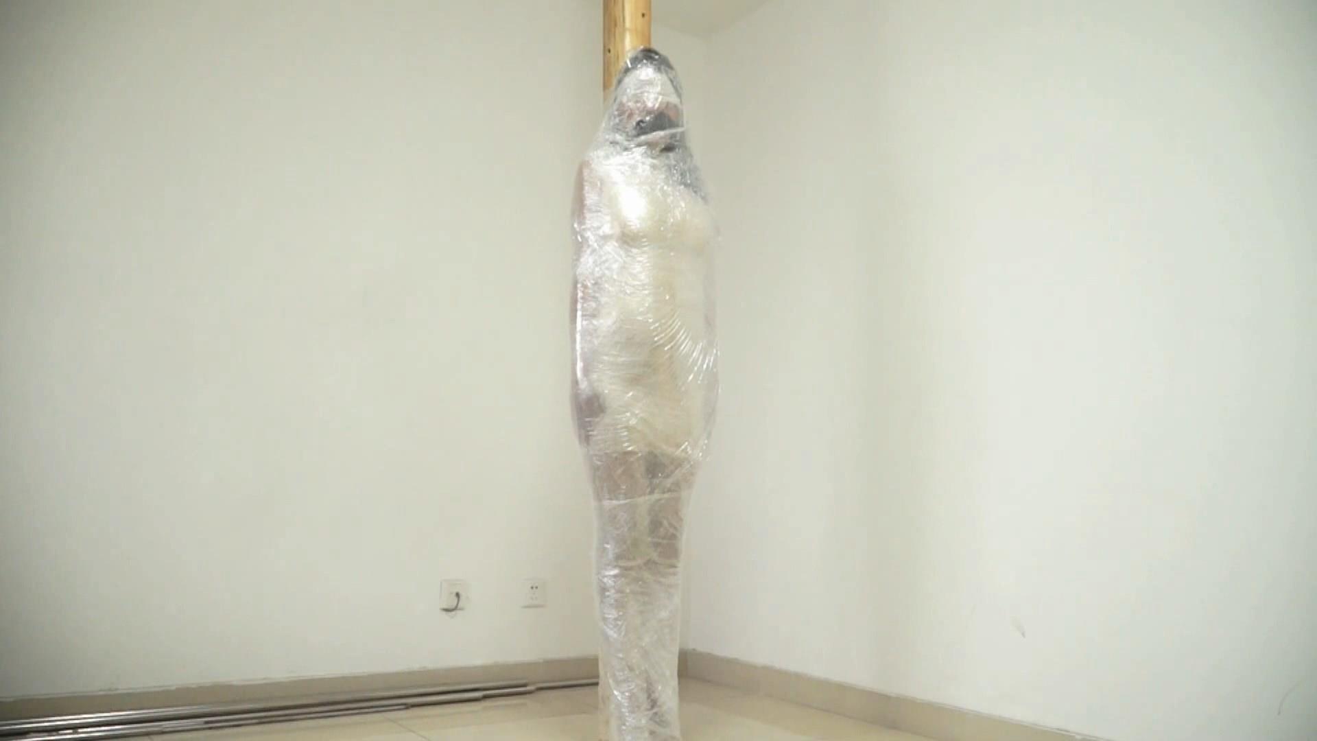 林丹丹被保鲜膜全包着,连身子都无法转动。