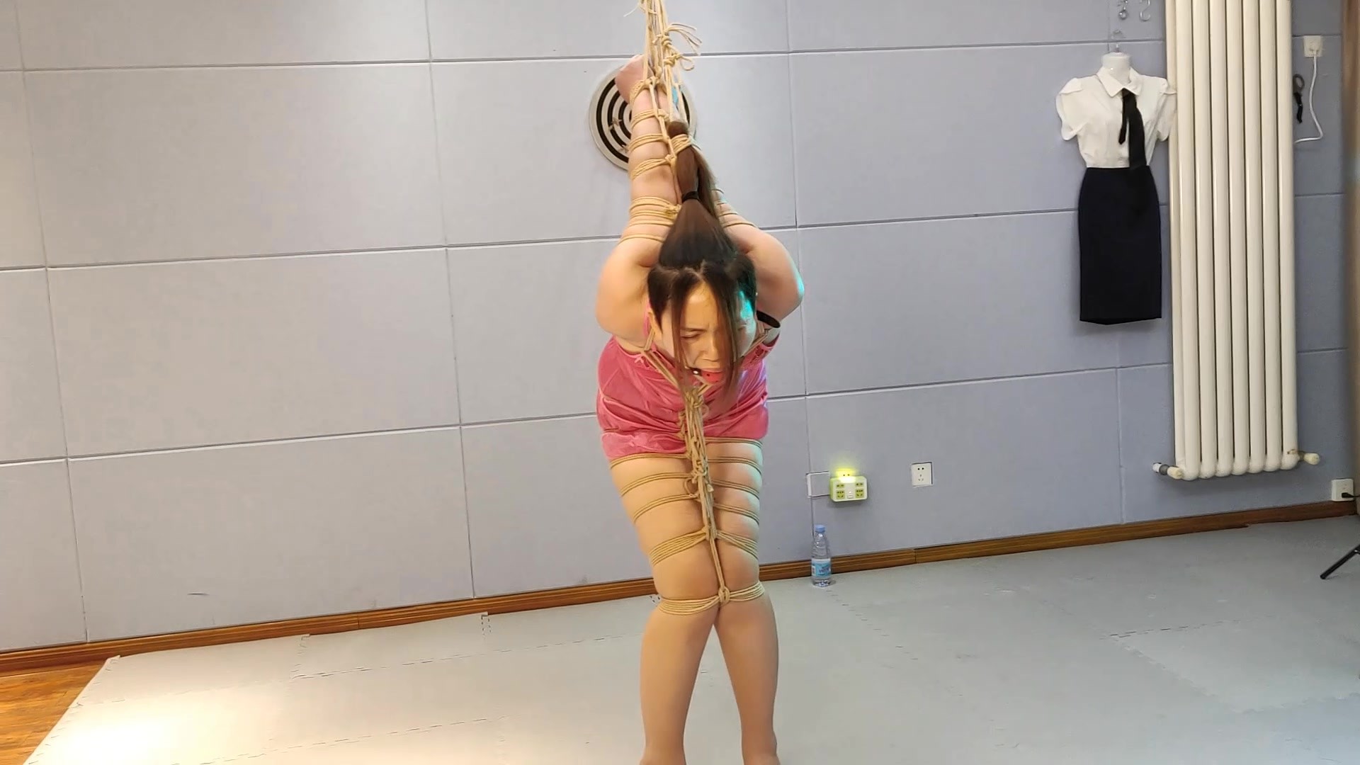 很久不见的孟芳,很久没有虐了,穿上性感睡衣,狠狠的捆了个直臂,再高高吊起,大腿捆绑,弯腰吊着,口球堵嘴,这种情况下,孟芳只能不断的流出口水,伴随着痛苦的哀嚎。真正的绳虐