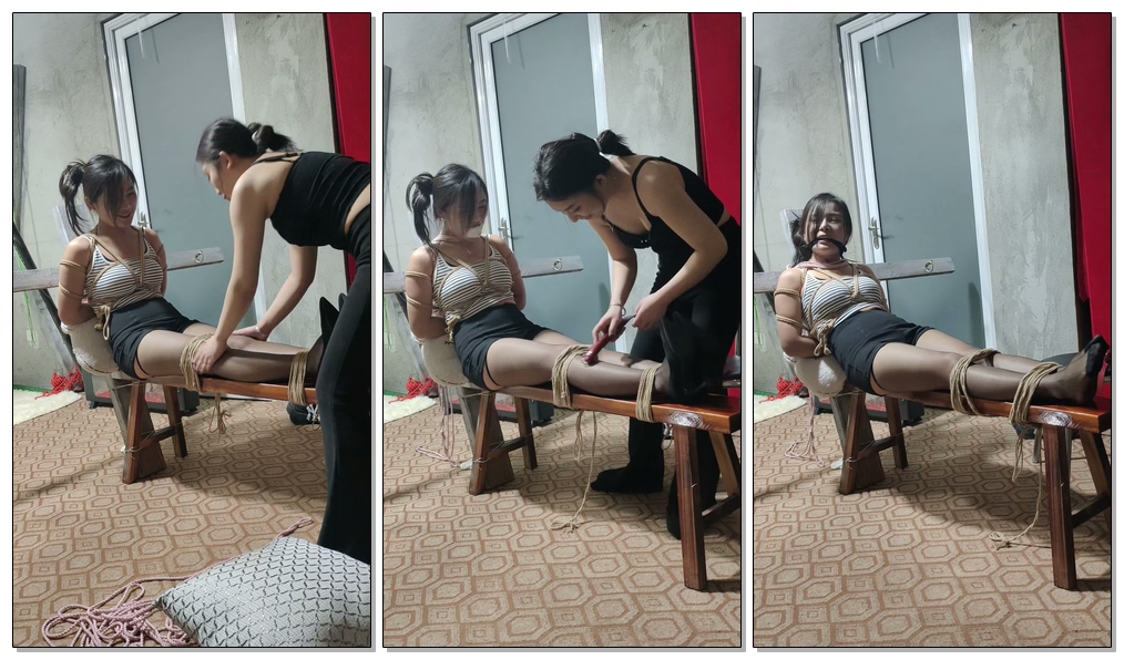 【皖北绳艺】母女、老虎凳、绝对黑丝、尖头高跟、性感吊带挠脚心鞭打