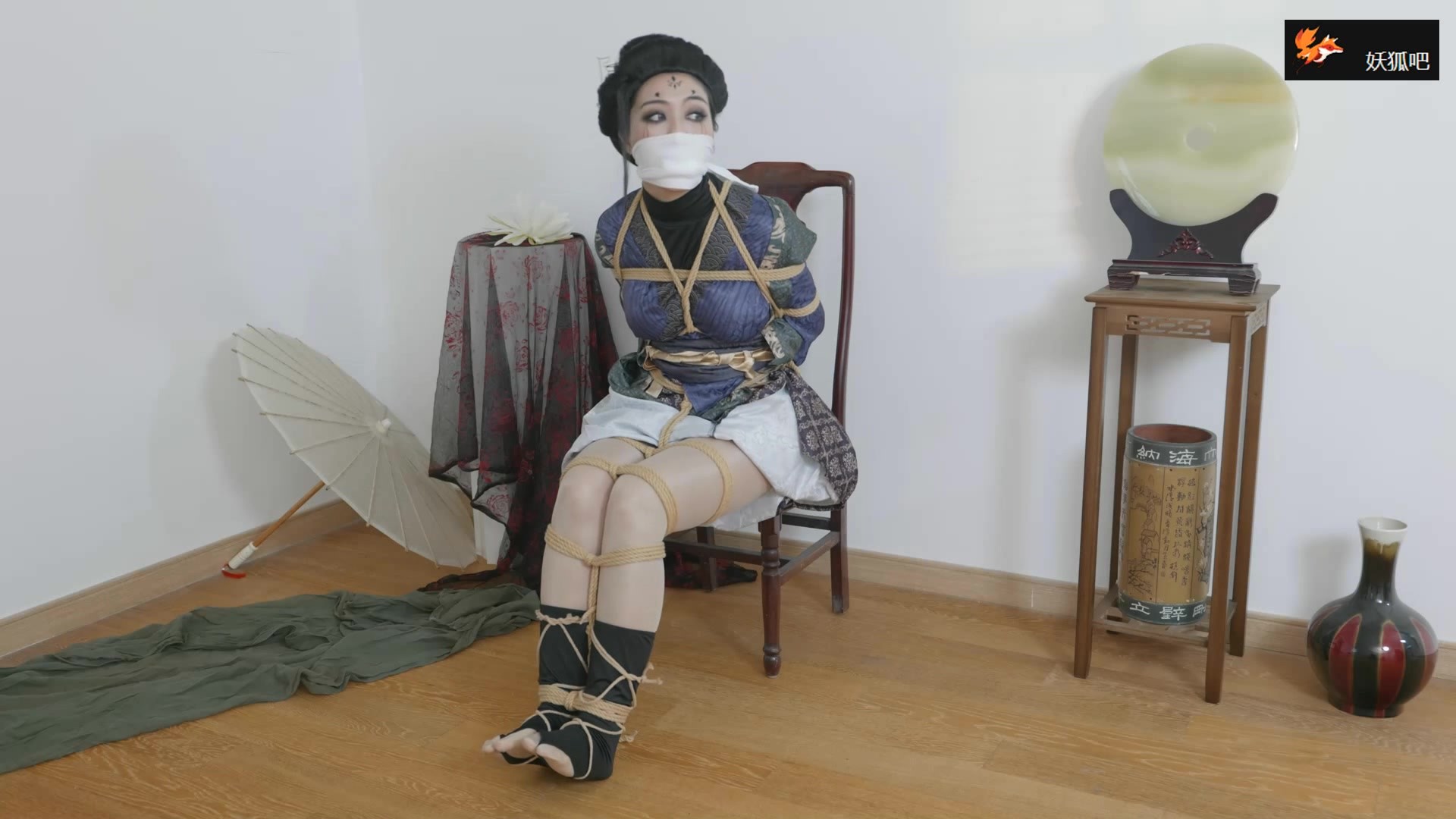 【红鲤鱼】安娜黑丝日式固定椅子白布勒嘴