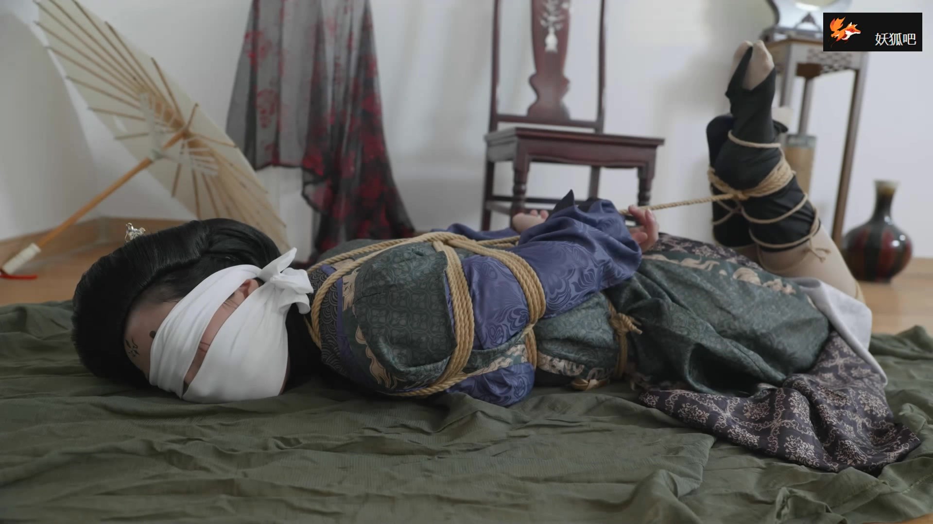 推翻丹炉,所以必须把妖精绑起来,蒙眼堵嘴让她放弃挣扎才可以