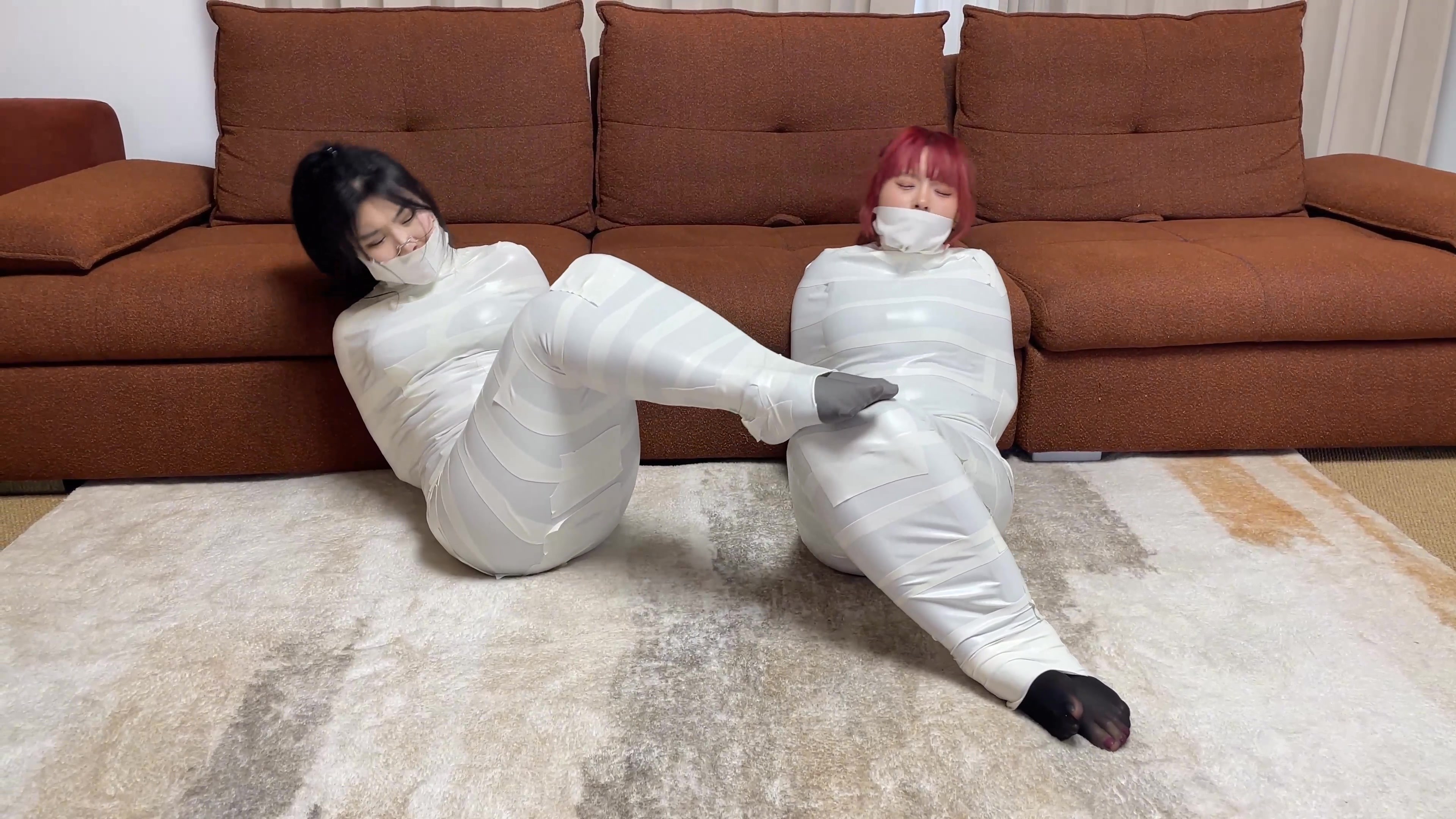 【云雀工作室】完美复刻漫画 《被入室抢劫的美丽母女 下》超人气漫画完美复刻 双人木乃伊捆绑蠕动 求救只有一墙之隔~