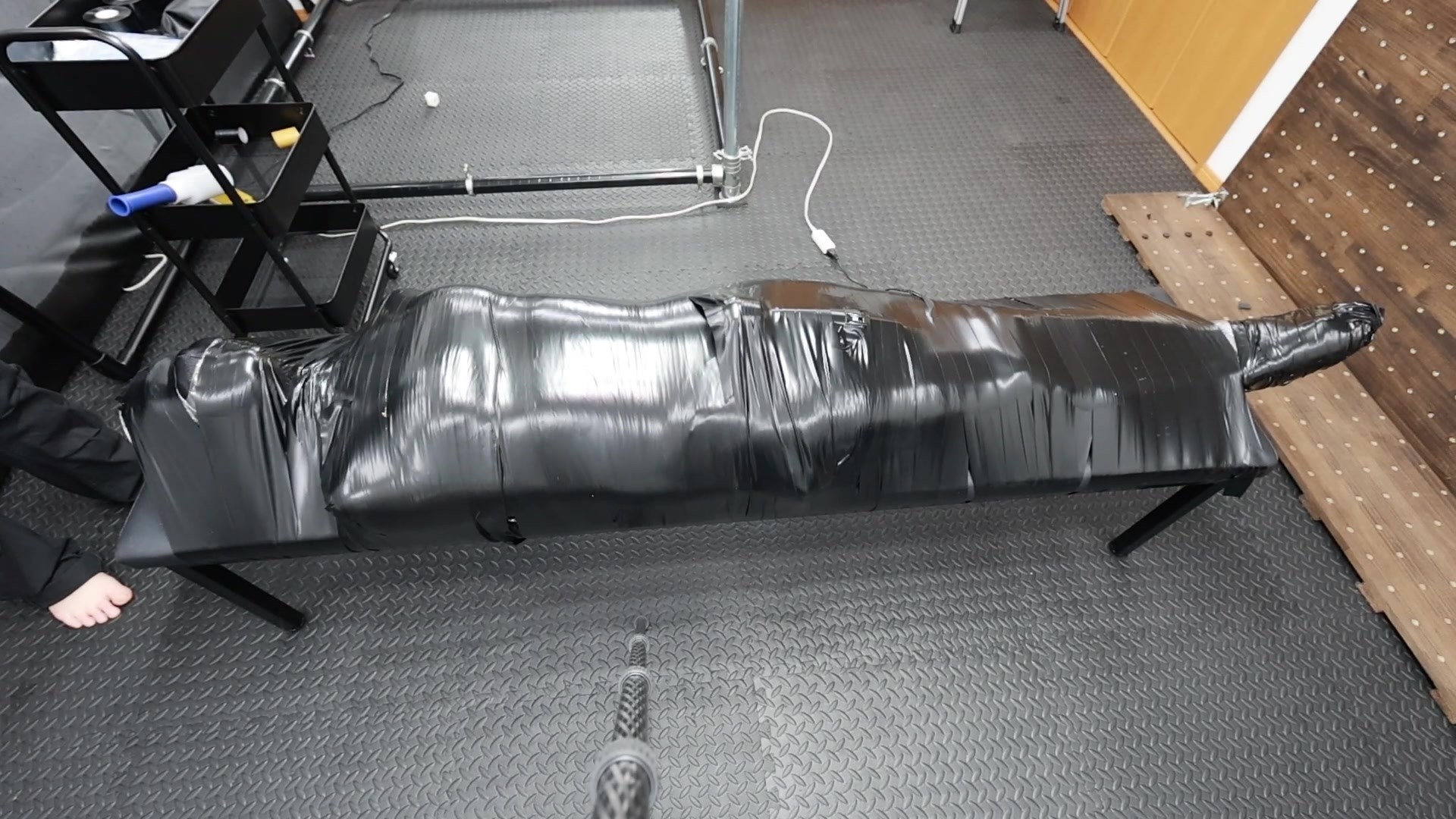 在上一部保鲜膜木乃伊的包裹上,再加一层静电胶带全包(完整包裹过程)。